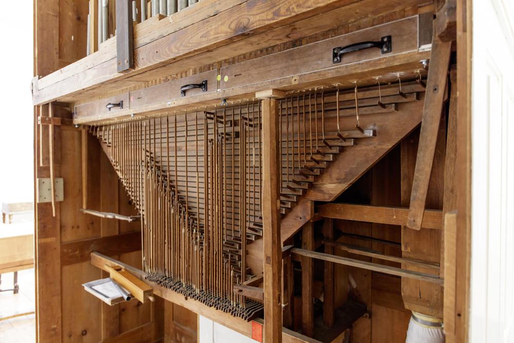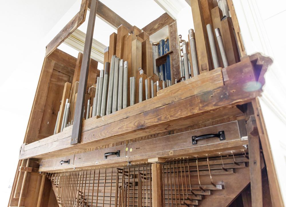From Zion Lutheran and Reformed near Orwigsburg, PA. Rebuilt1884 by Thomas Dieffenbach. Purchased May 1990 from Thomas S. Eader estate. Returned to original 6-stop condition. 2 manual stops and pedal stop from 1884 rebuild removed.