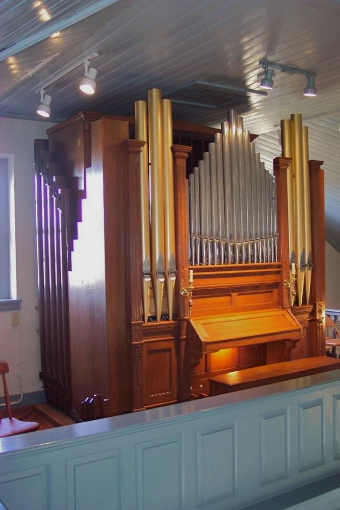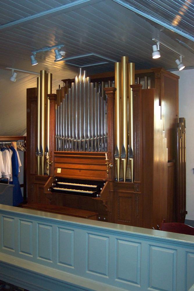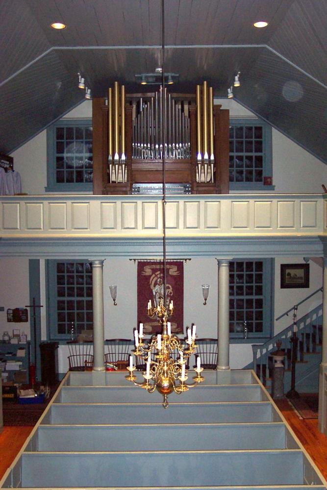 Updated through online information from David M Storey. -- The organ was listed in the Organ Clearing House in 1992 as # 1297, original builder and date unknown. The organ was largely a mixture of disparate parts. In 2002, David Storey built the current instrument using pipes and case from the remains of the former instrument. The manuals are tracker action on a slider chest. Pedal is electric action, 1 flute rank playing at 16, 8 and 4 with hitchdown pedals as stop controls. New pipes were added to make the current stoplist and all was voiced for the room. New slider wind chest and mechanical key and stop action. The organ dedication concert was played by Bryan G.Rowe, June 3, 2003.