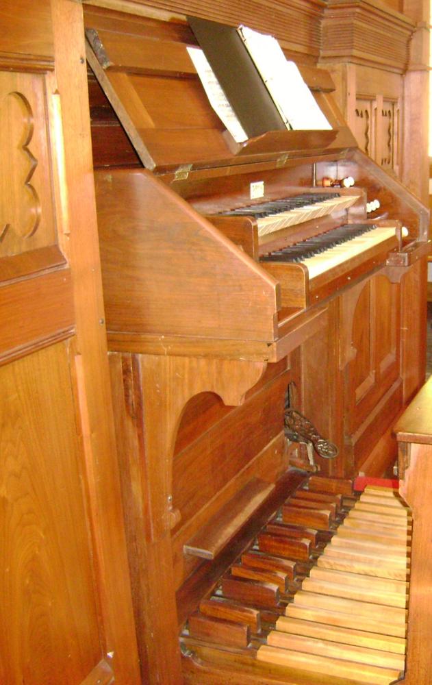 Identified through online information from James R. Stettner. -- Free-standing and encased. 3-sectional facade. Attached, projecting keydesk. 1907 to Hillcrest Presbyterian in W. Seattle.