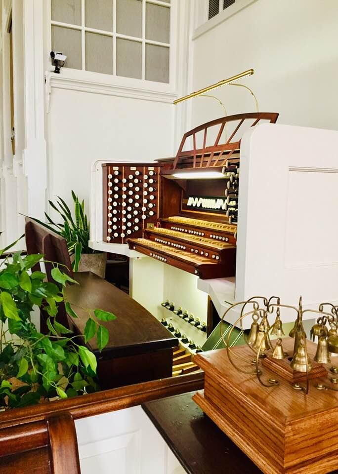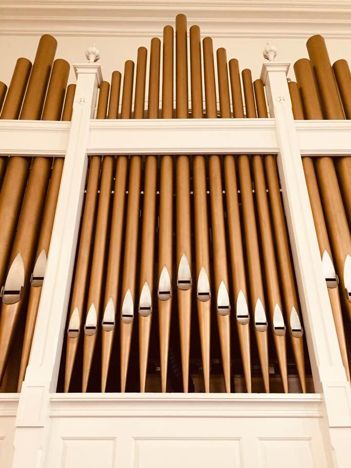 Updated through online information from faucher. -- There is mention of an organ built for this building by William Goodrich containing 13 stops and 731 pipes. It was installed in the rear gallery until 1881. Hutchings-Plaisted was engaged in 1881 to rebuild and enlarge the organ at the left front of the church. This instrument preserved the original pipes and chests of the Goodrich which lasted until 1957. In 1929, the action was converted to electric and a new console provided by William Laws. Rostron Kershaw performed the rebuilding in 1957, providing all new windchests and further enlargement and rearrangement - using the old Laws console. By 1973, it had become unreliable and Berkshire Organ was commissioned to undertake a major tonal revision and enlargement and to provide a new console. In 1995, Faucher Organ Co. was commissioned to tonally enlarge the instrument, build a new 3-manual drawknob console, replace the winding system, and add a digital Choir and Antiphonal divisions.
