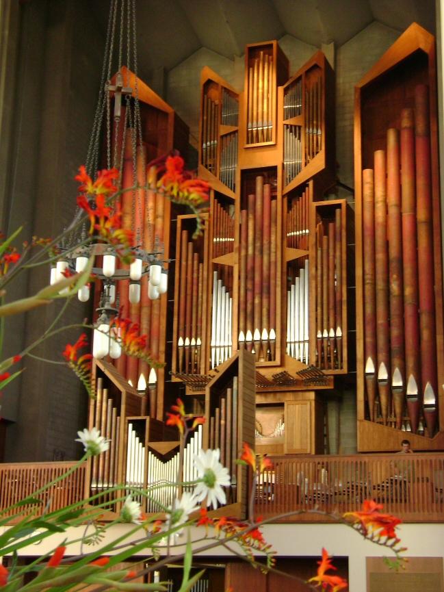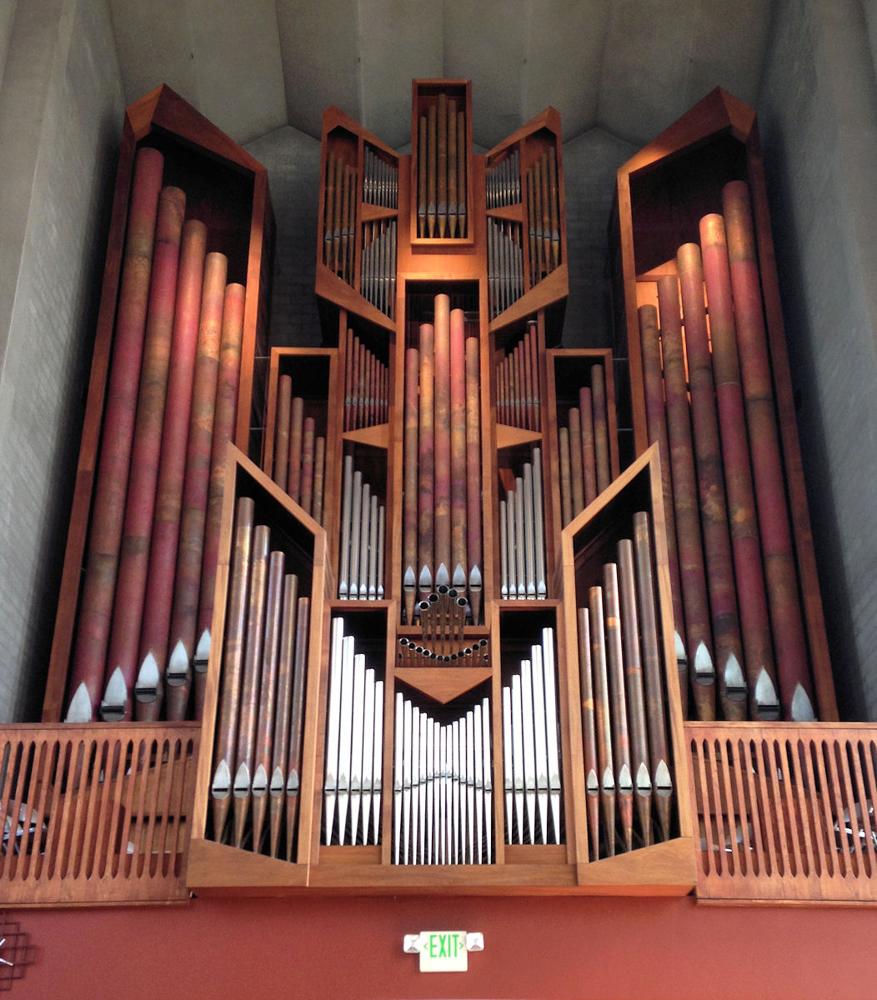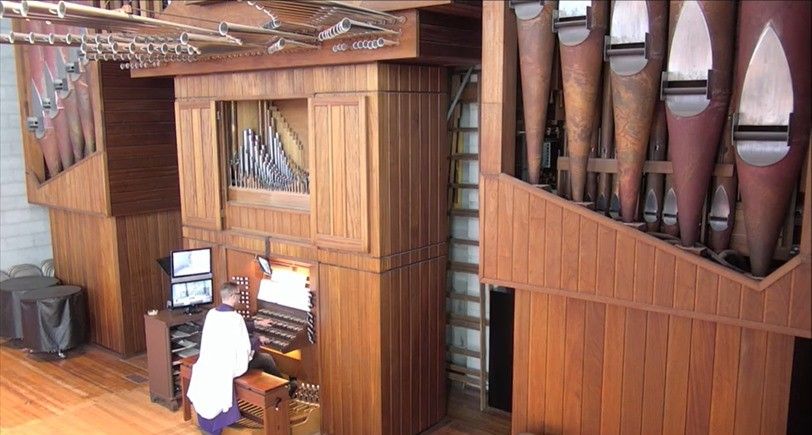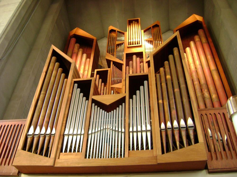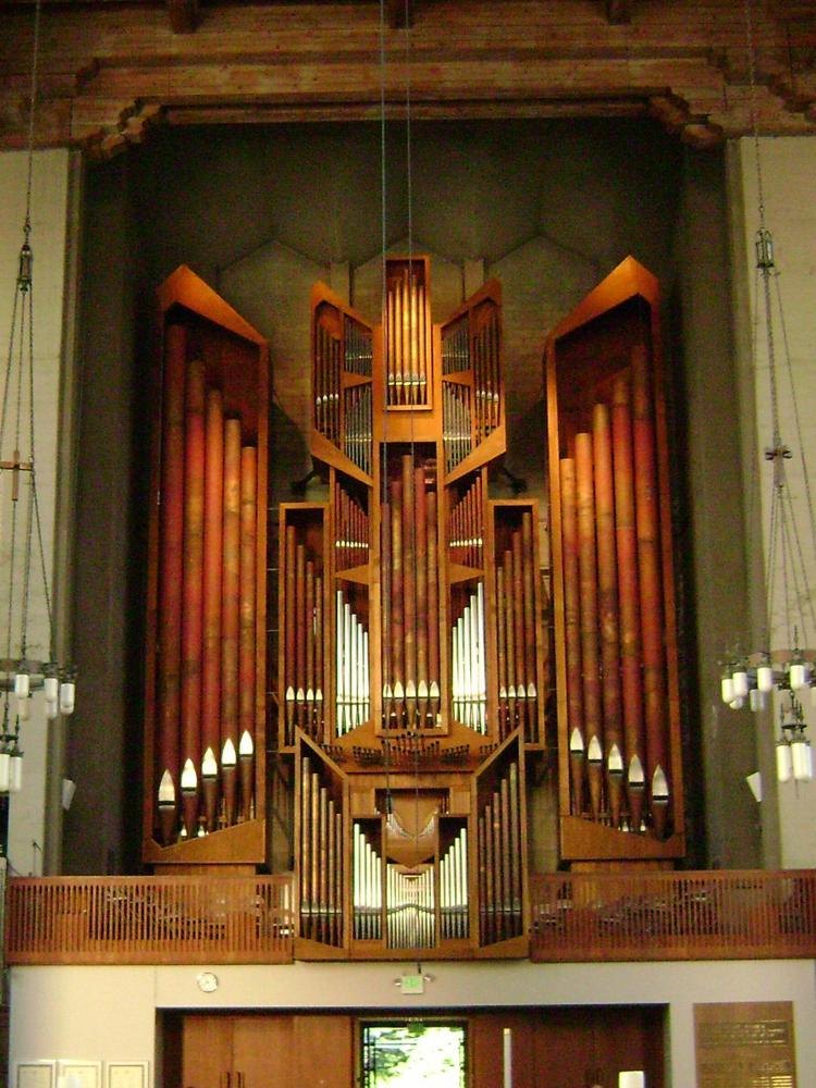 Updated through online information from James R. Stettner. -- Just this past week, Paul Fritts & Co. have replaced the original 16' & 8' Chamade ranks with new pipework built in the Fritts shop. The two new ranks are patterned after Jordi Bosch. The 8' rank is full-compass. The 16' rank begins at middle d (note 27) with the first 26 notes being 4' in Spanish style. The bells are flared. The new stops sound wonderful!