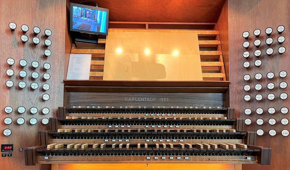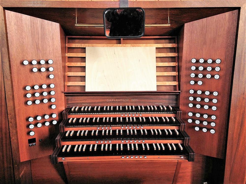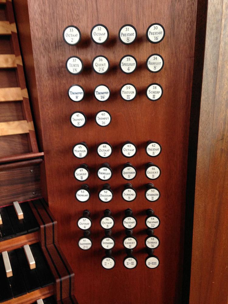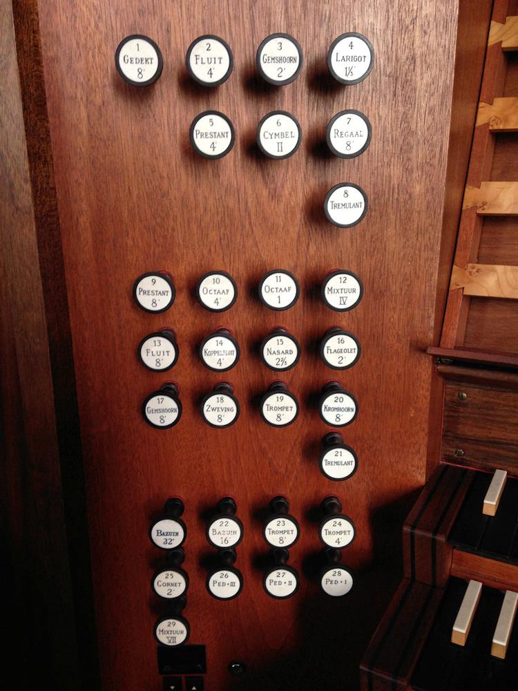 Updated through online information from James R. Stettner. -- The Fritts work consisted of a complete cleaning and regulation of the pipework; changing the action to a suspended mechanical action; the addition of a 16' and 8' Trompete to the Hoofdwerk; the addition of a 32' Bazuin to the Pedaal; and the addition of a Zymbelstern to the Borstwerk; plus a Rugwerk to Bovenwerk (III + I) coupler originally not present. The Great 16' Trompete was installed after 1993.