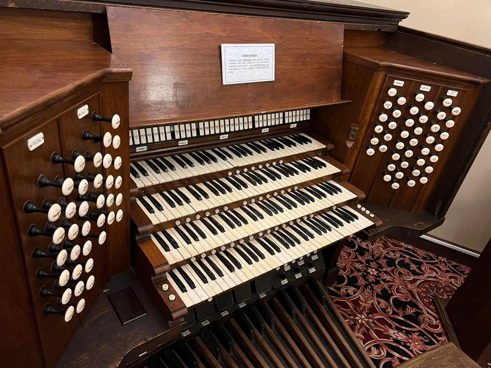 Opus 696 is installed above the ceiling of the auditorium in a space n1.easuring eighteen by thirty-two feet. The organ speaks through a grille into the auditorium below. The Echo was placed in a separate location. The console was located in a balcony at the left side of the auditorium floor, facing the stage. The specification demonstrates Bell's influence, with emphases on 8' pitch; large-scaled, leather-lipped diapasons; seventy-three-note manual chests for 161 and 8' stops only (not 4'); and celestes drawing both ranks, the unison ranks not able to be drawn separately. Atypical is the number of stops left unenclosed on the Great division. The flue voicing was completed on April 10, 1929; reed voicing was completed on April 17. The swell boxes were to be 2" thick and "tightly fitted." -- *2007 OHS Atlas*
