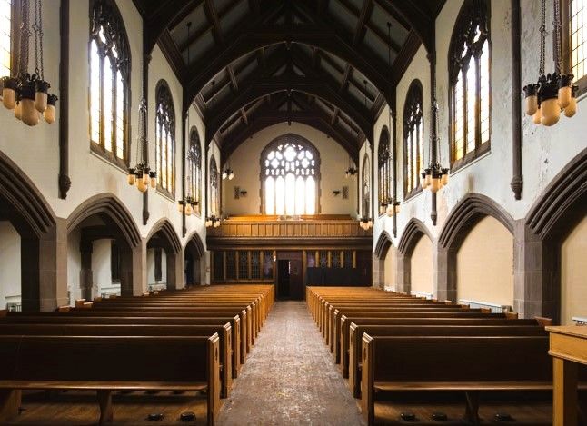 From detroiturbex.com: In 1913 Christ Church established a mission on the east side of the city, building a small frame chapel on Manistique near Jefferson Avenue. The church was named for a Celtic missionary, Columba, the patron saint of the city of Derry in Northern Ireland. Dr. William Maxon, rector of Christ Church had visited the monastery of St. Columba off the coast of Scotland in 1890 and came away so impressed that he decided to name a church after the saint if he ever had the chance. Fifty people attended the first service of St. Columba Mission, which grew as the neighborhood around it flourished. St. Columba was elevated to a parish in 1917. A parish house on Jefferson, built in 1922 further cemented the role of the church in the surrounding community by offering a gymnasium, meeting hall, and dining facilities. Having outgrown the small chapel, the congregation began raising funds for a larger church starting in 1926. On October 16th, 1927, the cornerstone for the present-day sanctuary was laid. The new church building was dedicated on December 2nd, 1928, the 15th anniversary of the churches founding. The gothic style building, featuring Plymouth granite and Bedford limestone was designed by Lancelot Sukert and cost $160,000. Like many other churches in Detroit, St. Columba experienced a decline in membership and its congregation moved to the suburbs. By 2000 the neighborhood had one of the highest percentages of abandoned properties in the city, leading to what has been described as an “urban prairie” of vacant, overgrown lots. Attempts by the church to buy the vacant land to create a green space ran headlong into the messy bureaucracy of local government. Ultimately the Episcopal diocese decided to close St. Columba in 2003. For several years the church was used by Detroit Faith Center but has been vacant since at least 2015.