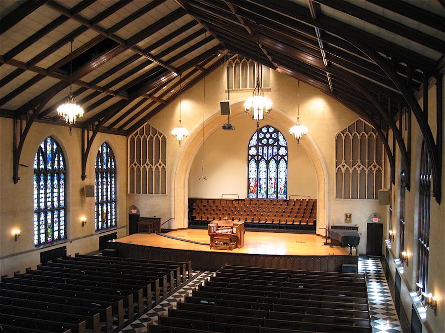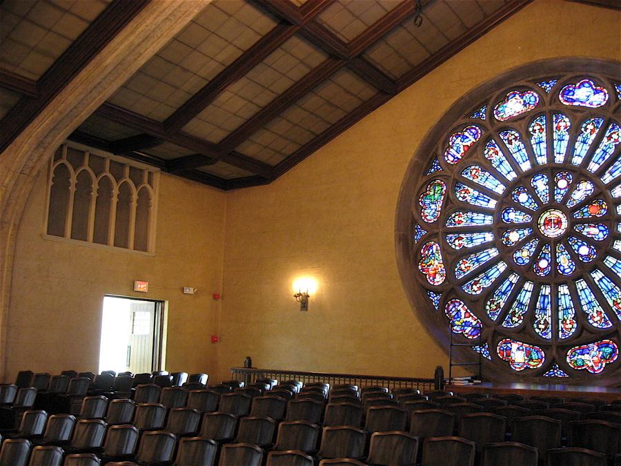 Updated through online information from Chad Boorsma -- The Great, Choir, and Pedal divisions are located in the chambers to the left, the Swell division is located in the chamber to the right, and the Solo division is located in a chamber above the proscenium arch. The Echo section and the chimes are located in a chamber which opens in the southwest corner of the gallery.