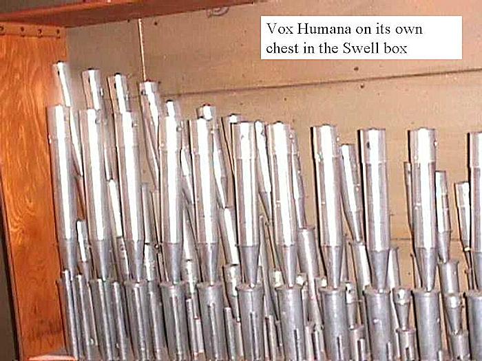Updated through online information from James R. Stettner. -- The Church of Christ congregation has decided not to keep the organ and has given it to Puget Sound Pipe Organs of Seattle - who will be removing it in late summer, 2012. The Swell scale 60 8' Salicional and Voix Celeste were removed from the organ on Tuesday, July 10, 2012 and installed in the 7-rank residence organ of Tracey Dobkins in Oak Harbor, Washington on Saturday, July 14, 2012 by Puget Sound Pipe Organs.