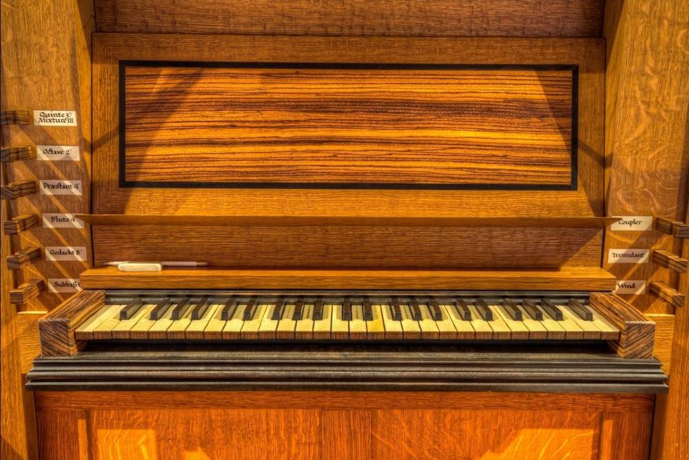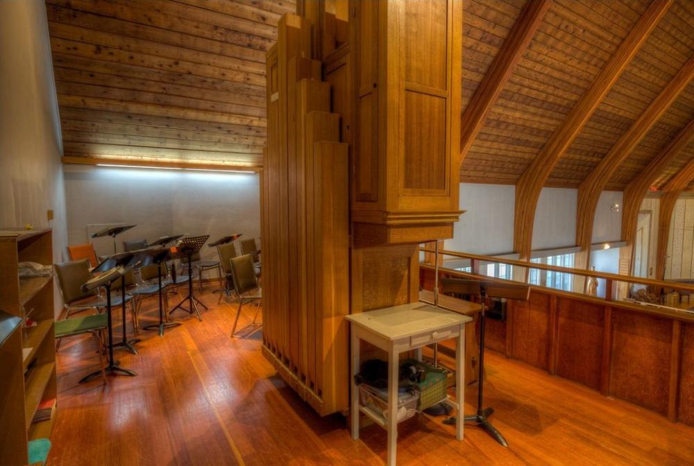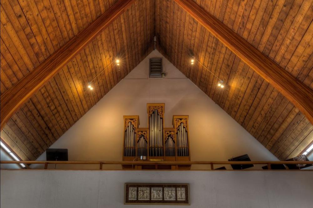 From the parish website: About Our Pipe Organ - Our pipe organ is both a beautifully crafted work of art and the perfect instrument for our musical repertoire. Built in 1990 by renowned builder John Brombaugh & Associates of Eugene, Oregon as his opus 31-f, it was the last of a batch of six built to this design. This one-manual Pipe Organ of 362 pipes is modeled closely on North German chamber organs of the early seventeenth century, and is one of very few of its type in North America. With nine ranks of pipes voiced to historical principles and tuned in an authentic 17th Century meantone temperament, it certainly is one of the finest organs of its kind in Canada. It perfectly complements the singing of early liturgical music, as well as contemporary repertoire. The organ was installed in the St Barnabas choir loft in December 1990 and was first used on Christmas Eve. Its case is of fumed Appalacian white oak, western red cedar, zebra wood and ebony. Oak carvings above the facade pipes represent acanthus leaves, vinca and plum blossoms, all of which happen to grow near the church.
