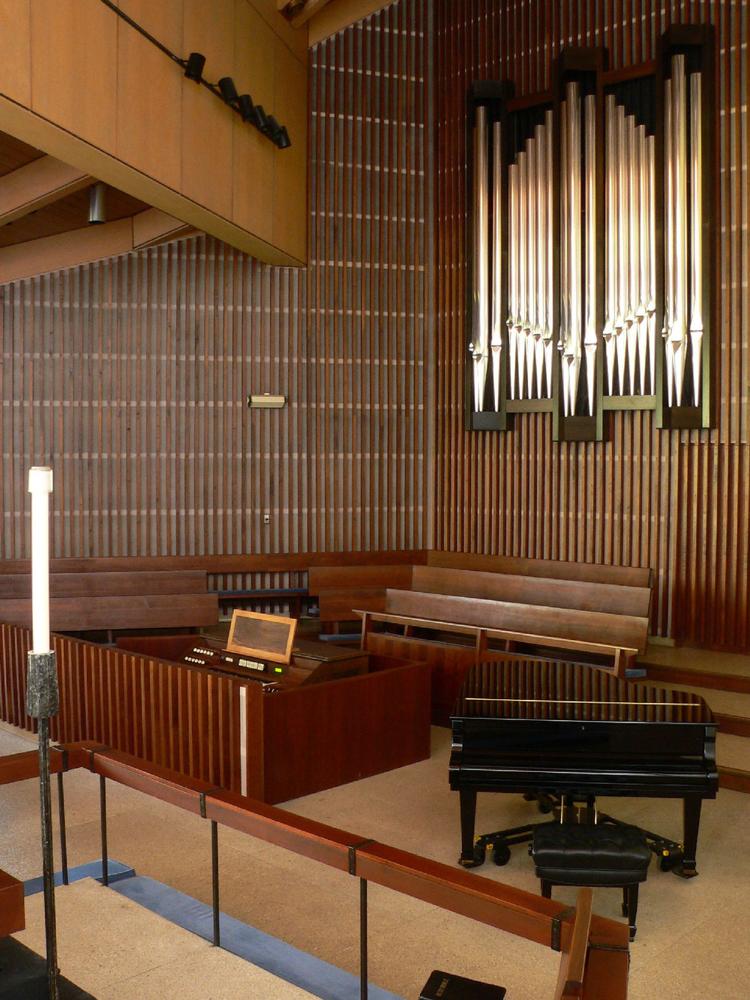 Updated through online information from James R. Stettner. -- The organ does contain both pipework and windchests from the previous 1968 Angell pipe organ.
