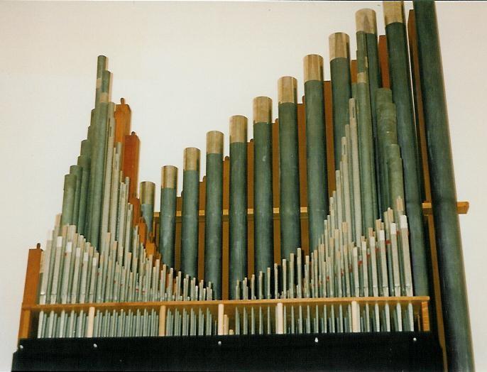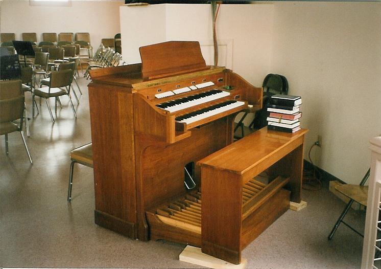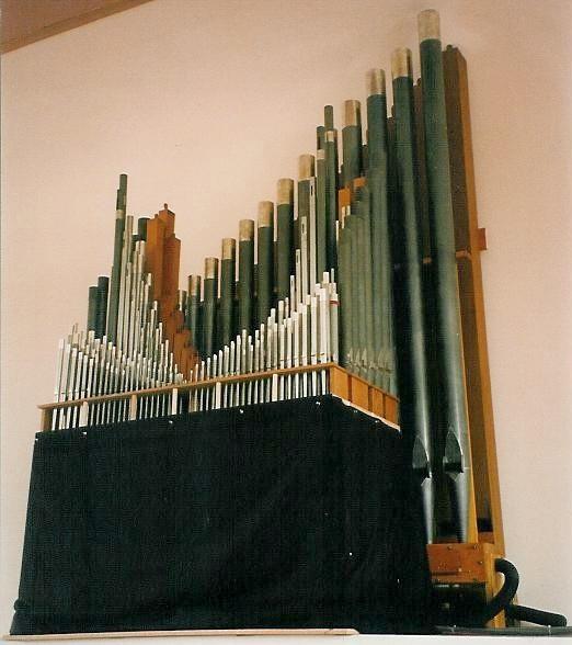 Identified through online information from James R. Stettner. -- This was a temporary installation. It is an organ that Richard Bond built for home use. When Holy Rosary had a fire in 1994 that essentially destroyed their rebuilt Kilgen, Mr. Bond loaned his home instrument to Holy Rosary for approximately 2 years while a new Bond organ was built for the church. The organ was placed in the rear gallery atop a pedestal of sorts. The console is a used Allen - gutted for pipe organ use. It has a 32-notes, concave and radiating "Princess" pedalboard. The pipes are used from various sources. The Salicional is an Echo Salicional and is likely from the Austin formerly at Portland's Second Church of Christ, Scientist - and now located at Faith Lutheran.