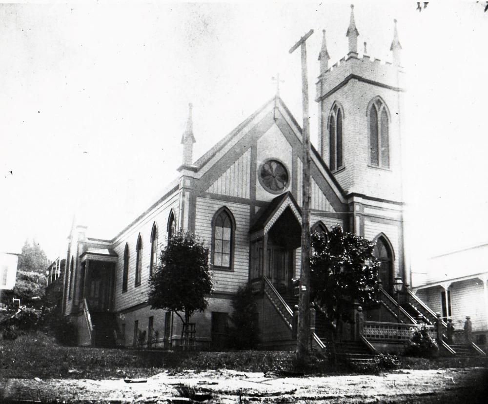 On line update from Lanny Hochhalter: The church had a 25 member "renowned" choir of men and boys from the late 1880's until the early 1910's. Carl Denton, Organist of Trinity Church, Portland (OR) gave the dedication recital on the 1905 Kimball, including "The Lost Chord" and "The Angel's Serenade." The Kimball was hand-pumped until 1931 when an electric blower was installed.