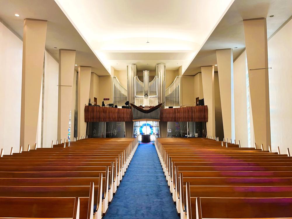 Updated through online information from Timothy Belk, Director of Music Ministries and Organist. -- The console exterior and case were refinished to their original finish June 2008. The original polished tin facade was replaced with burnished pipes of zinc in 1995 due to metal fatigue. The meticulous care of this instrument has been entrusted to the original builder since installation. It is in excellent condition and resides in a reverberant room with constant climate control. It is tuned no less than quarterly.