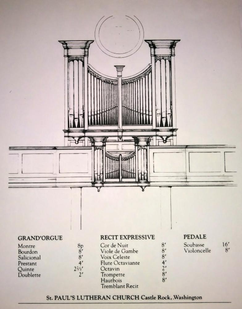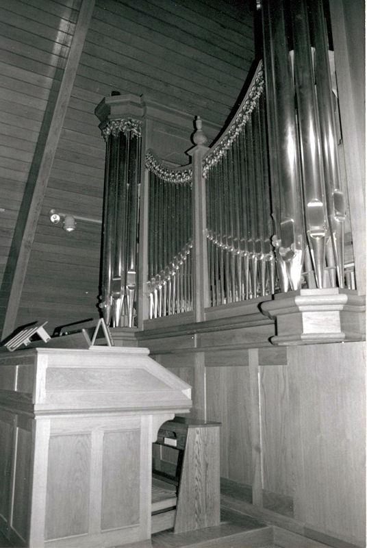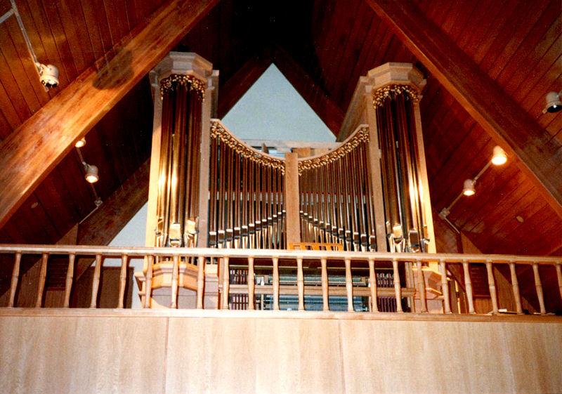 Updated through on-line information from James R. Stettner. -- As originally conceived, one manual division was to have been in a case in Ruckpositiv position on the gallery rail, but this was changed in favor of housing the entire organ in one main case, with the expressive Recit behind the Grand Orgue. Also, the second Pedale stop was originally an 8' Violoncelle, but it proved to be less-than-ideal, and was subsequently replaced by the builder with a 16' Basson.
