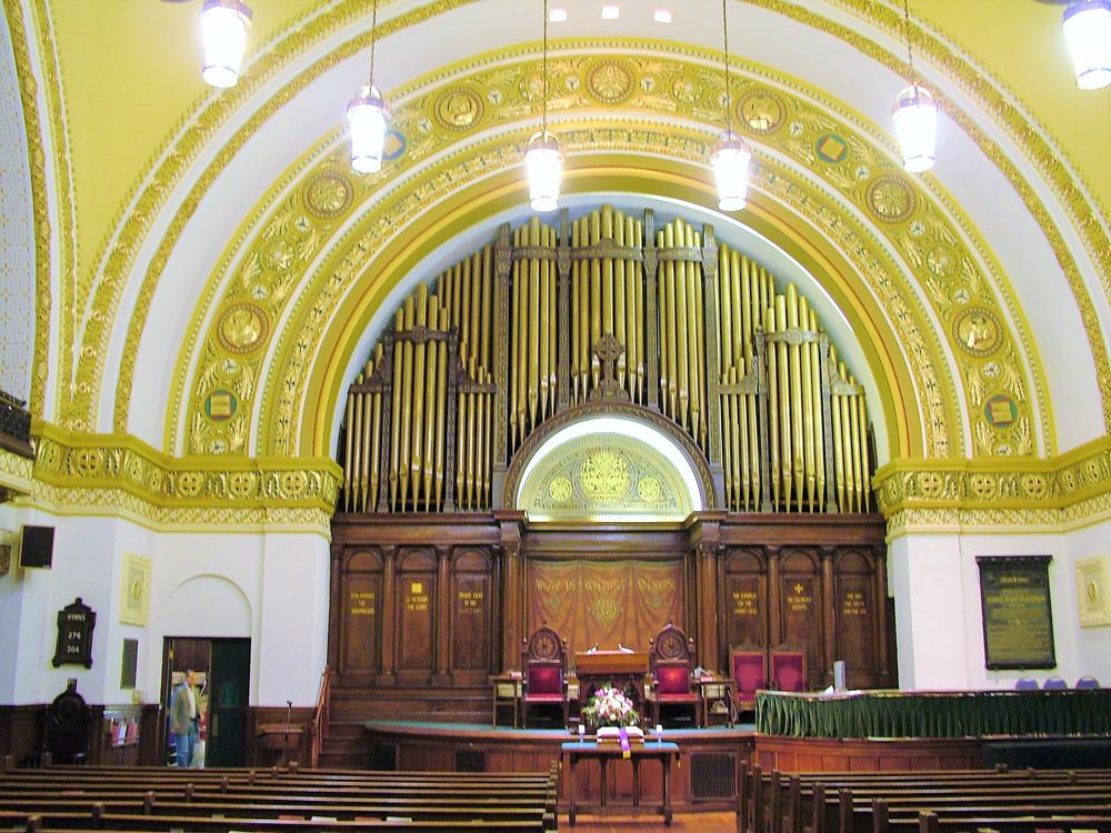 Updated through online information from David Ruler. -- 10.29.14 from facebook post by Organ Clearing House: "The Organ Clearing House is dismantling the large and beautiful M.P. Möller pipe organ at the former First Baptist Church, Philadelphia, PA. The organ is being placed in local storage there, in preparation for renovation and installation in another Philadelphia Church. Stay tuned."