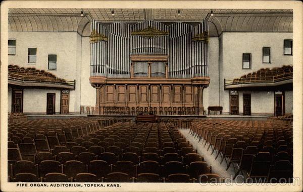 Updated through online information from Steven E. Lawson. -- Organ reported to cost $15,000. Dedication Concert on Friday, Feb. 17, 1905 with program by The Choral Society and The Modoc Club, and organists Clarence Eddy (Chicago) and George B. Penny (Topeka).
