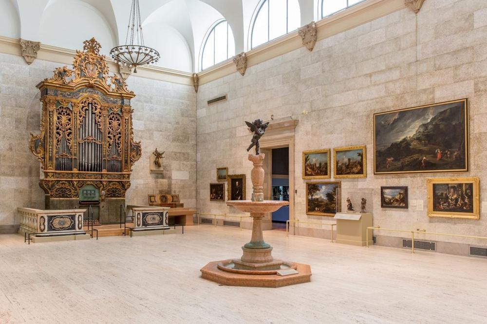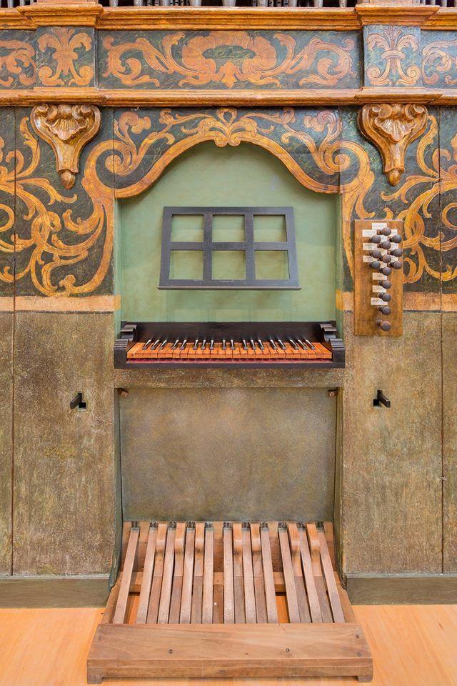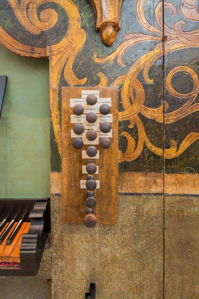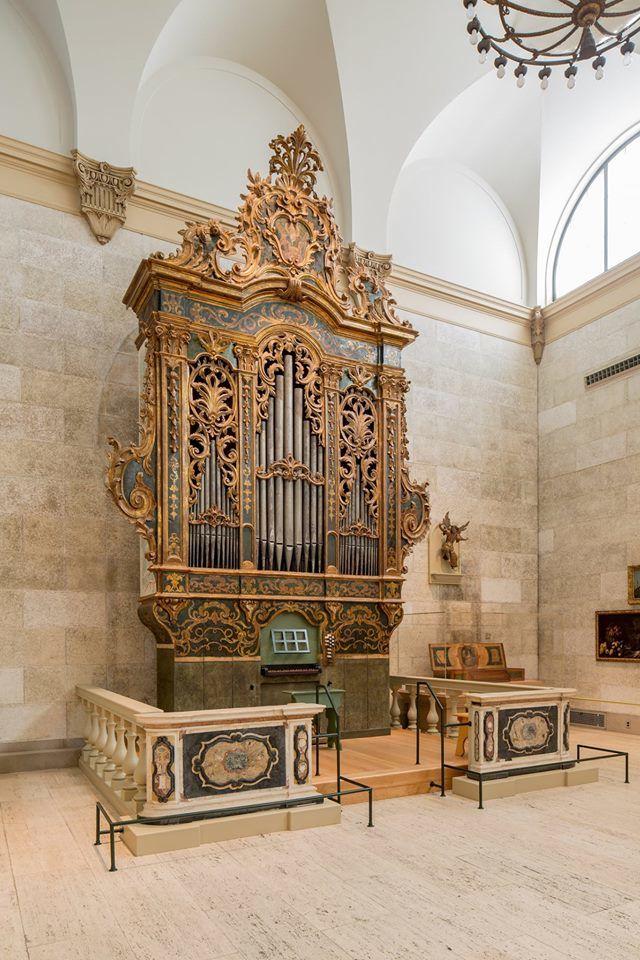 Updated through on-line information from James R. Stettner. -- According to the Memorial Art Gallery's website: "In 1980, Gerald Woehl, a renowned German organ builder and instrument restorer, discovered a magnificent Italian Baroque organ in Florence, where it was on the verge of being sold as furniture. Twenty-five years later, the instrument has taken its place as the only full-size antique Italian organ in North America. Now owned by the Eastman School of Music, the fully restored and thoroughly documented organ now fills the Gallery's Fountain Court with the sounds of the past."