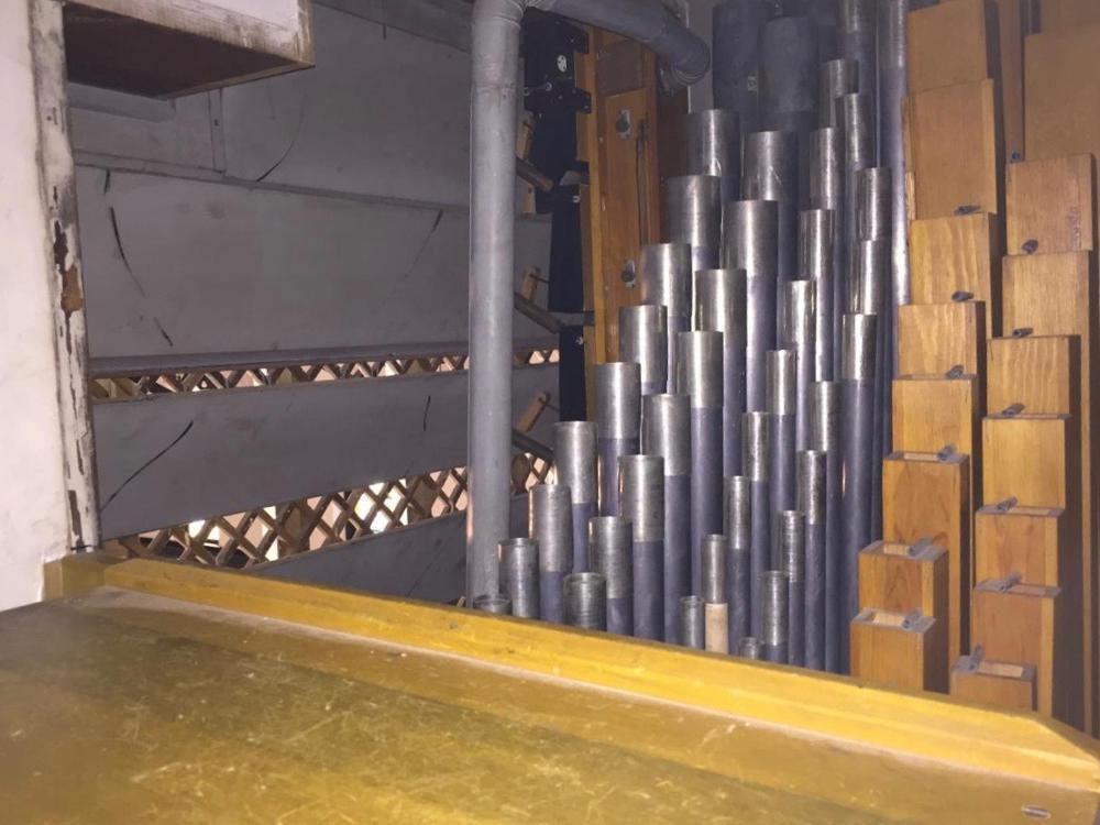Information on the contract obtained from the Moller archives stating that "existing blower†was used and information in Dr. Turner's book states that a pipe organ was installed in 1920 as part of a renovation of the auditorium, but that it was destroyed in a fire the following year. The description said that it was centered behind the pulpit with brass pipes (more likely gilded zinc) in the center arch. It goes on to state that this organ was not covered by insurance for the water damage that destroyed it. The builders who had organs in the area included Moller, Estey, Barckhoff, and Adam Stein, and we are researching session minutes and financial records for further clues. Since Moller used the existing blower, it was probably one of the "Apple crate†kinetic blowers made by Moller.