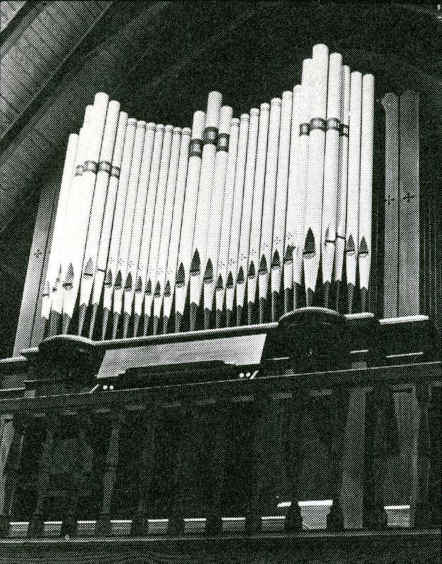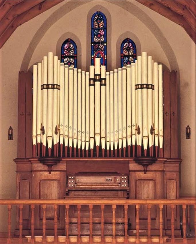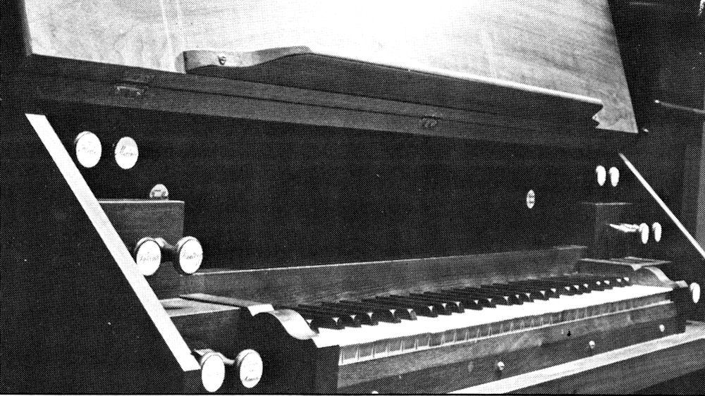 While the organ was apart for rebuilding, a handwritten statement was discovered inside the bellows. It read ''.James A.Young, Boston, Massachusetts, November 1, 1875 (Monday);' and in the access panel to the bellows, "Built 1875, October." These notations indicate perhaps a stock bellows made earlier, or that the instrument may have already been constructed when it was sold. -- *2001 OHS Handbook*