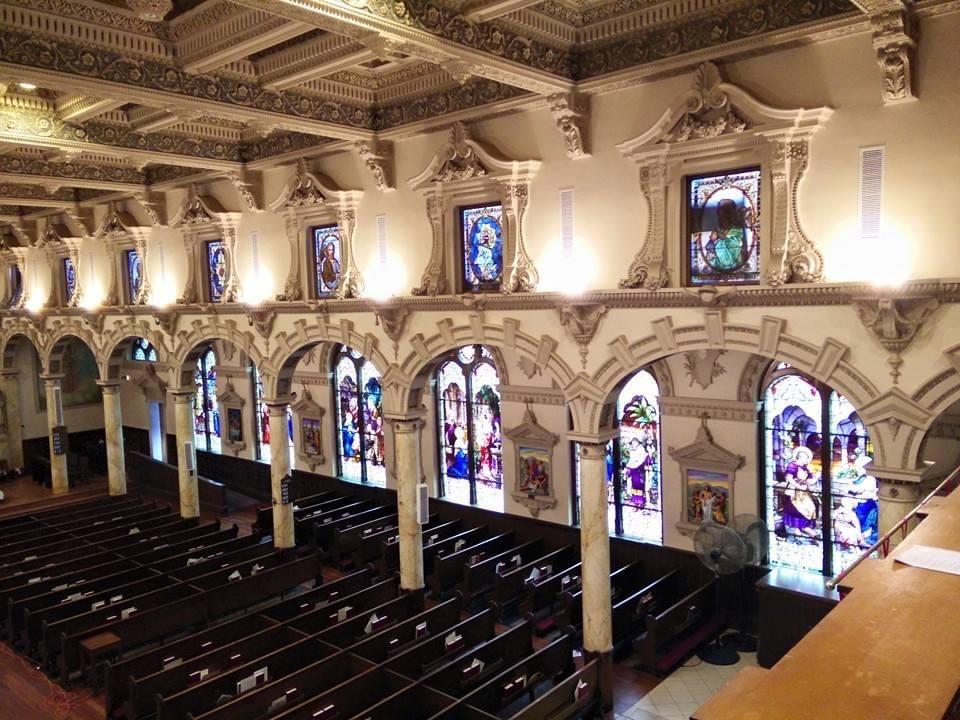 The organ is powered by a 1 h.p. Spencer blower from the 1920s. There is an unconfirmed legend in the church the organ was second hand, but the oak case looks custom-built for this gallery location. The diatonic "M" chests are placed horizontally, Great on the left, Swell on the right, with the 3-stop pedal "A" chest across the rear. The pipework is very high quality and the voicing is very fine for the period, the Great chorus being rather brilliant. The reed shallots all have tinned exterior surfaces.