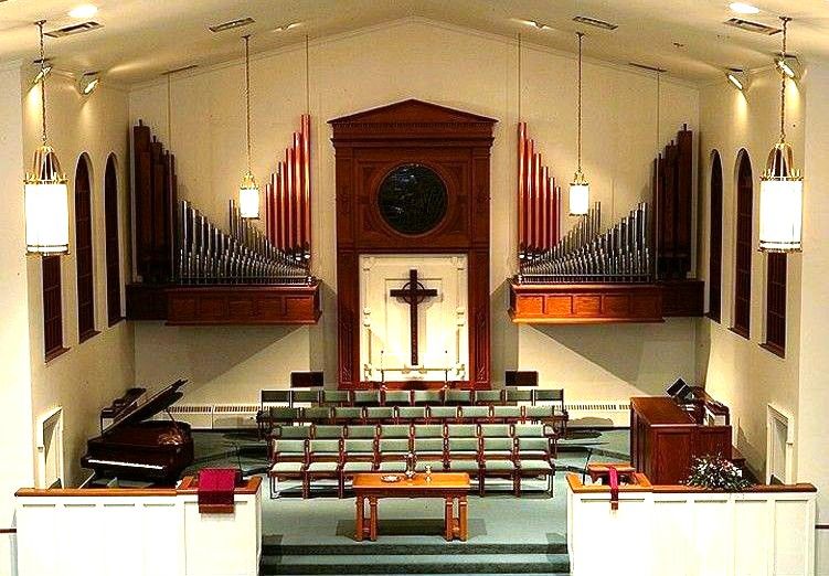 Updated by René Le Grand, listing this web site as a source of information: https://www.fpcnorthville.org/. <br> <br>Placement: in two <i>nids d\'abeille</i> [bees nest], in the front of the room, with all visible pipes.