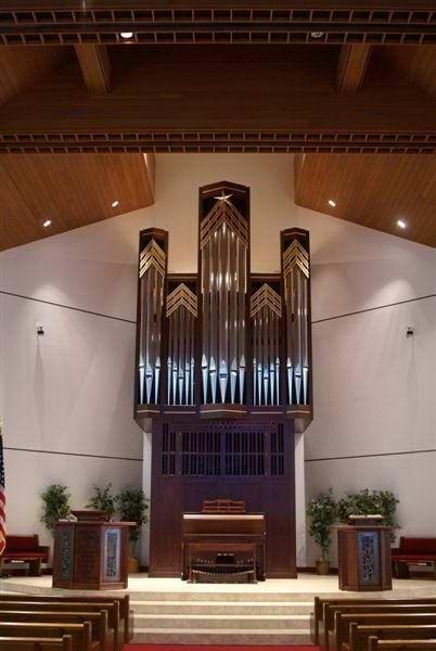 Identified through on-line information from Stephen Hall. -- Burton K. Tidwell designed the instrument and oversaw all details of its completion, including pipe scaling and tonal finishing. The case was built by Robert L. Sipe, Inc. and the console and digital voices are by the Allen Organ Company. (information from church website, accessed July 2009)