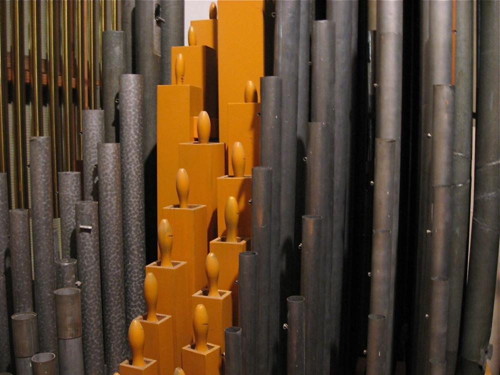 In 2012, it was discovered the several of the Pedal Bourdon pipes were cracked. These remain in the chamber but were replaced tonally by Peterson digital sounds.