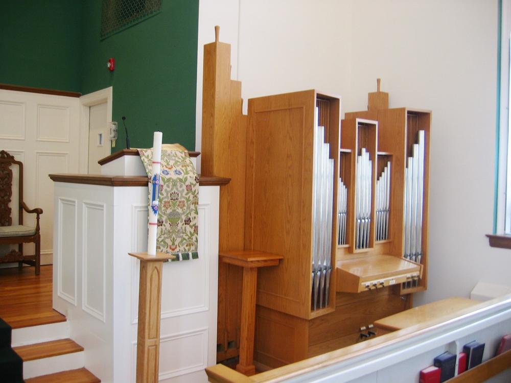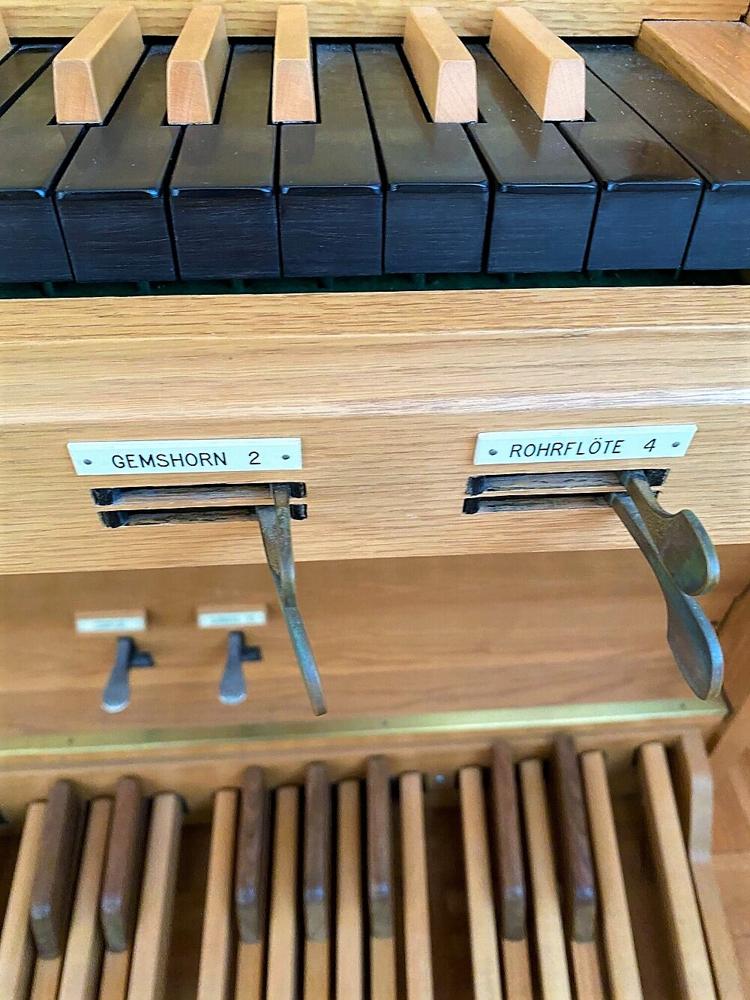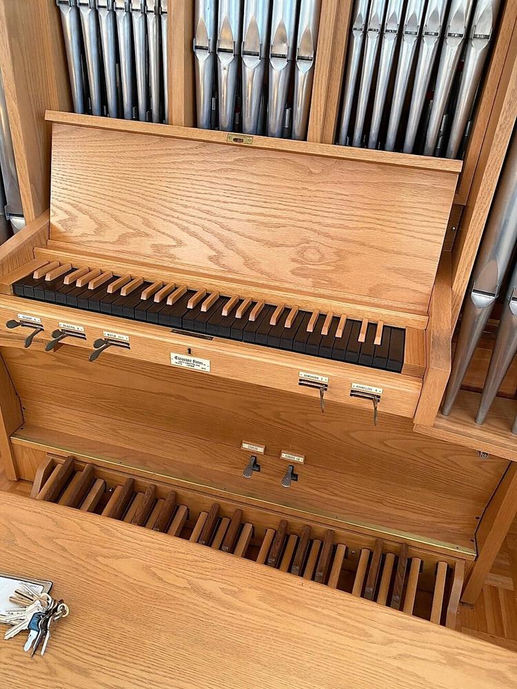 The manual stops will be divided with separate controls for bass and treble operated by sliding levers placed below the keyboard. The Pedal stop and coupler will be controlled by hitch-down foot -operated levers. [Receive online from Jeff Scofield December 28, 2010]