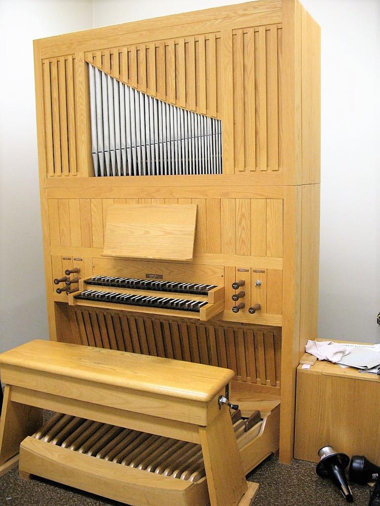 Updated through online information from James R. Stettner. -- The organ is free-standing and encased and appears to have the Man. II 1-1/3' Quint partially en facade. The organ was for sale on the Leek Pipe Organ Company website, and has since been sold.