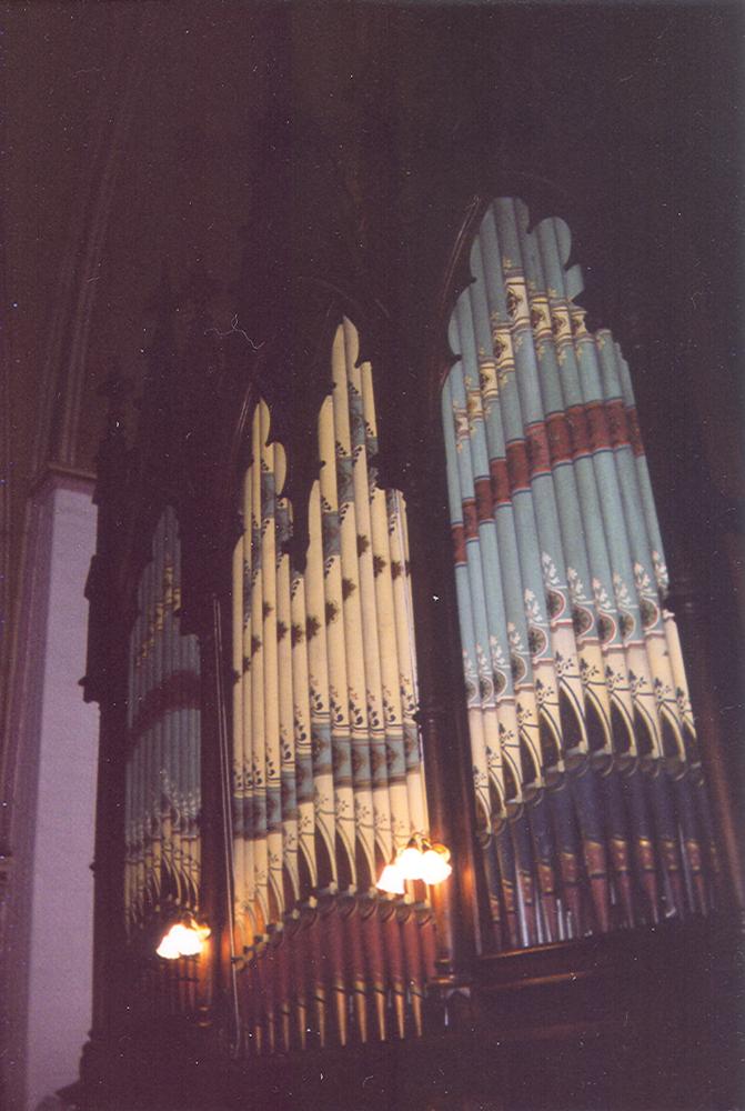 From John Igoe: A new organ supply console was installed in the late 1990's by local maintenance man Al Bowders. In 2004-5, OHS member David Storey placed solenoid motors on the slider chests, to replace the badly designed pneumatic stop action. The organ had terrible winding problems which have now been corrected.
