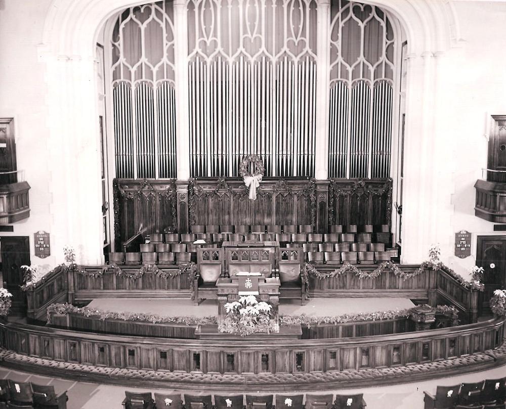 Identified through on-line information from T.Bradford Willis, DDS. -- The contract for the organ was signed on April 26, 1930 in Waco by J. R. Milam, chairman of the board of trustees of Austin Avenue Church, and T.H. Jackson, secretary. It also has the church seal and has the signature of Roy J. Abbott, salesman for Geo. Kilgen & Son, Inc. The space for the president-vice president-treasurer for the organ company is blank on the contract in the Austin Avenue church archives. The cost of the organ was $9,500.00 and this was to be paid in cash on installation. The display pipes were to be gold bronze and lacquered. An echo organ was to be installed in the ceiling of the nave.