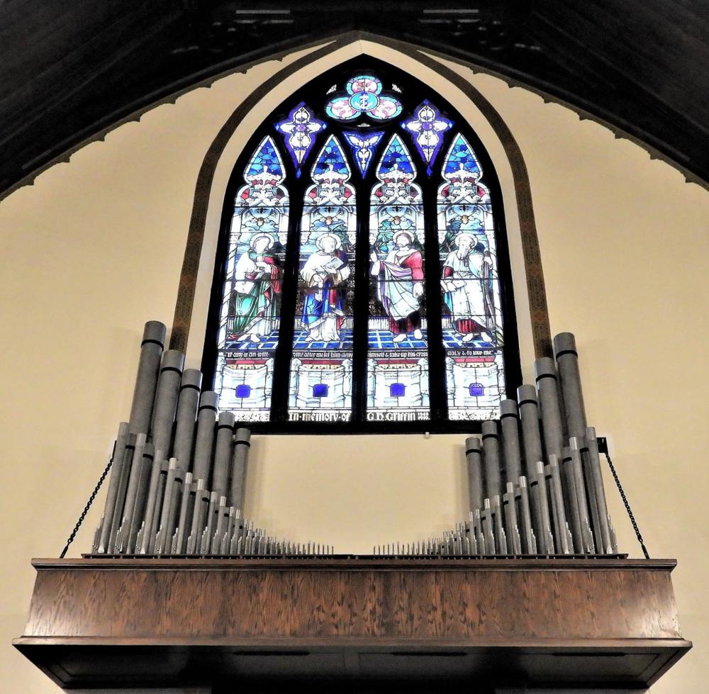 FINGER PISTONS: General 1-4, Swell 1-4, Great 1-4, Pedal 1-4, Set, Cancel; TOE STUDS: General 1-4, Swell to Pedal (rev), Great to Pedal (rev), Sforzando (rev); PEDAL MOVEMENTS: Swell Expression (bal.), Crescendo (bal.).