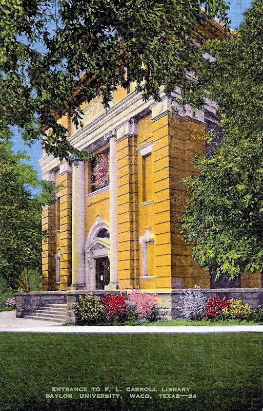 Updated through online information from T. Bradford Willis, DDS. -- An extensive fire destroyed most of the Carroll Chapel in 1922; the building now houses the Texas Collection of Baylor University. The 1903 organ had facade pipes which were stenciled.