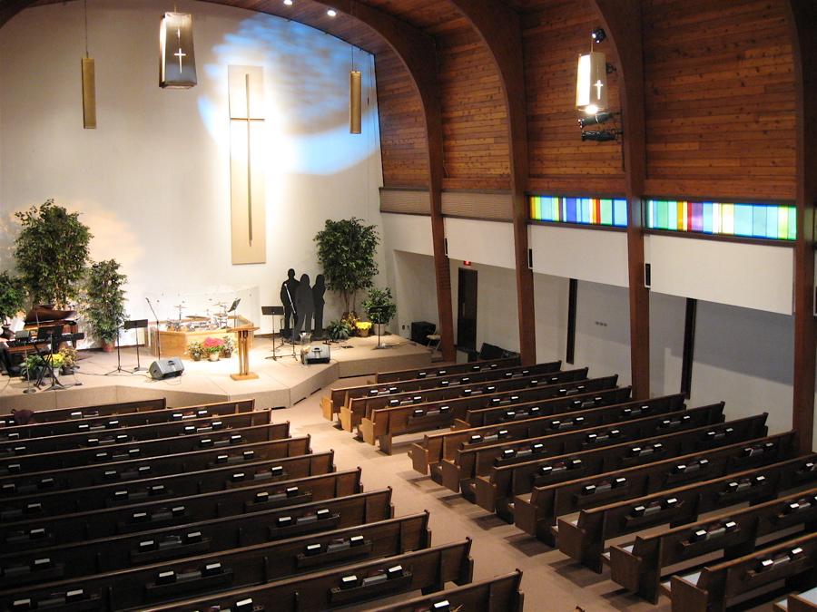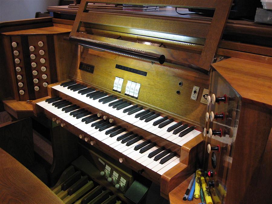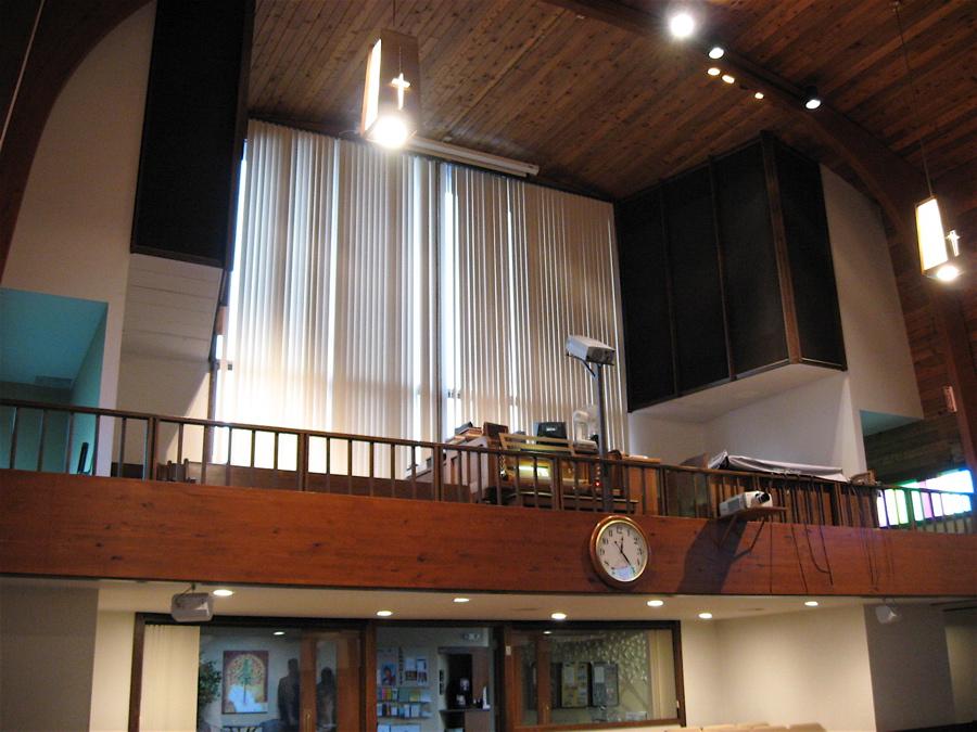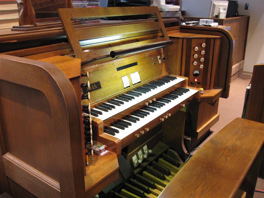 Identified through on-line information from Chad Boorsma -- It appears that the chimes may have been added after the original installation. The Great division is located in the left chamber, and the Swell is in the right. The congregation now worships in a contemporary style, and the organ has not been used in the last few years.
