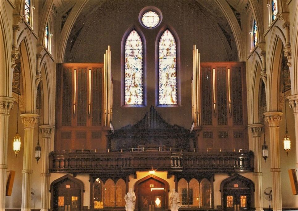 St. Paul’s became the Cathedral of the new Diocese of Worcester in 1952; the Casavant organ, incorporating 22 of the Johnson ranks, was dedicated 8 December 1957 by Bishop John J. Wright. The stoplist was developed by Rev. John B. O’Connell, Diocesan Director of music; Rev. Arthur A. Ouilette, cathedral director of music, and Robert G. Morel, Casavant representative. Fernando Gernani played the opening recital at the dedication; his program included: Bass et Dessus de Trompette and Recit de Nazard, Clerambault; Concerto in D minor, Vivaldi-Bach; Toccata, Adagio and Fugue in C major, Bach; Noel, d’Aquin; and Grande Piece Symphonique, Franck. Joan Marie Moynagh, Soprano, assisted.”