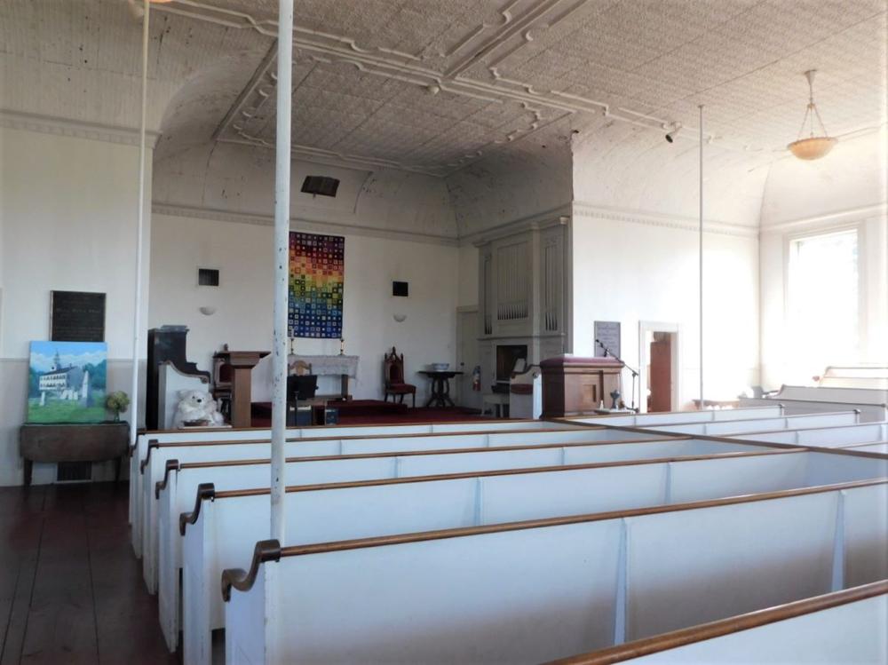 Updated through on-line information from James R. Stettner. -- The organ was originally installed at the rear of the room in a slightly elevated choir gallery. According to the parish history, the choir moved to the front in 1887, and a Hamiltonian Vocalion organ was installed up front. The Whitney remained in the rear gallery. A scant four years later, the choir returned to the rear gallery, the Whitney was repaired, and the Vocalion was sold. In 1927, the Whitney was moved to the front, and recessed into a chamber on the right side of the chancel. The choir again moved with the organ. When a Hammond was given as a memorial gift in 1947, it was installed in the rear gallery where the Whitney had originally been - and the choir moved once again. The Whitney has a 3-sectional facade with 23 dummy pipes arranged: 4-15-4. At some point in time, the originally dark organ case was painted white. The organ is a G-compass organ. The manuals are 58 notes: GGG, AAA-f3. But the Pedal is 17 notes: GGG-BB - including the GGG#. All of the manual stops are partial-compass: even the Twelfth and Fifteenth (47 pipes each). The Pedal 16' Sub Bafs [sic] is 12 pipes. There are two unlabeled foot trundles: essentially a Principal Chorus On, and Principal Chorus Off. Both the 8' St. Diapason and 4' Flute are chimney flutes. Source: extant organ; documented May 11, 1989.