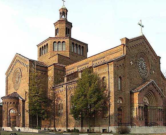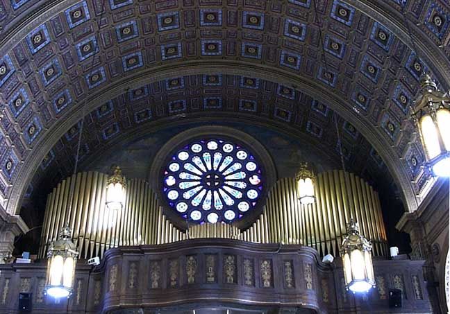 Identified through online information from Peter Gonciarz. -- This organ is a 3 manual, 23 rank instrument built by the Tellers-Kent Organ Company out of Erie PA. This is an extremely interesting instrument that is a very interesting space. Blessed Trinity was built by the outstanding architect Chester Oakley. Blessed Trinity is a highly ornate byzantine styled church built in 1925 that was designed to be a miniature of St. Peter's Basilica in Rome. I've always said that if anyone was placed in this church and you had to guess where in the world you were, Buffalo NY would be the last place you would say. I can't exactly say that the tone of the organ (American Orchestral) exactly matches the interior of the church, but it works. There are a couple things to know about the organ itself. The organ has been slightly altered, but not much. The console is absolutely 100% original, as well as the keyboards, and pedal board. The exact alterations are unknown, however since there weren't any extra stop tabs, things such as the Great Tremolo were sacrificed for the new stop by taping a small piece of paper over the old stop and wiring the new stop to that stop tab. So looking at the console the specification isn't exactly in the proper order, i.e. the 4' Octave on the Great comes after the 2' Super Octave, and one of the 4' stops on the Swell is located next to the Swell-Swell 16'. Some of the alterations that I suspect was the addition of a 2' Super Octave on the Great, the addition of a 4' Spitz Octave on the Swell (which is the stop located to the extreme right on the Swell stop rail), and I believe that the organ originally had double 8' Diapasons on the Great and one of the two was made playable in the 16' Open Diapason in the pedal which is 1-12 wood, 13-25 metal. Other than that everything else seems to be original, and the voicing hasn't been messed with. Unfortunately as of Spring 2011 some repairs need to be addressed. The organ is really in good shape considering that most of everything is original. The console is what really suffers most, and the ancient phosphor bronze contacts are probably a large part of the problem. The most notable issues are the fact that Swell-Great 8' does not work, and a quite unusual problem - almost any stop you select activates the 16' Tuba in the Pedal! (Talk about a pain during a soft communion meditation!). The combination action is also completely shot. The secretary did mention that church is in the process of raising funds to renovate this instrument.