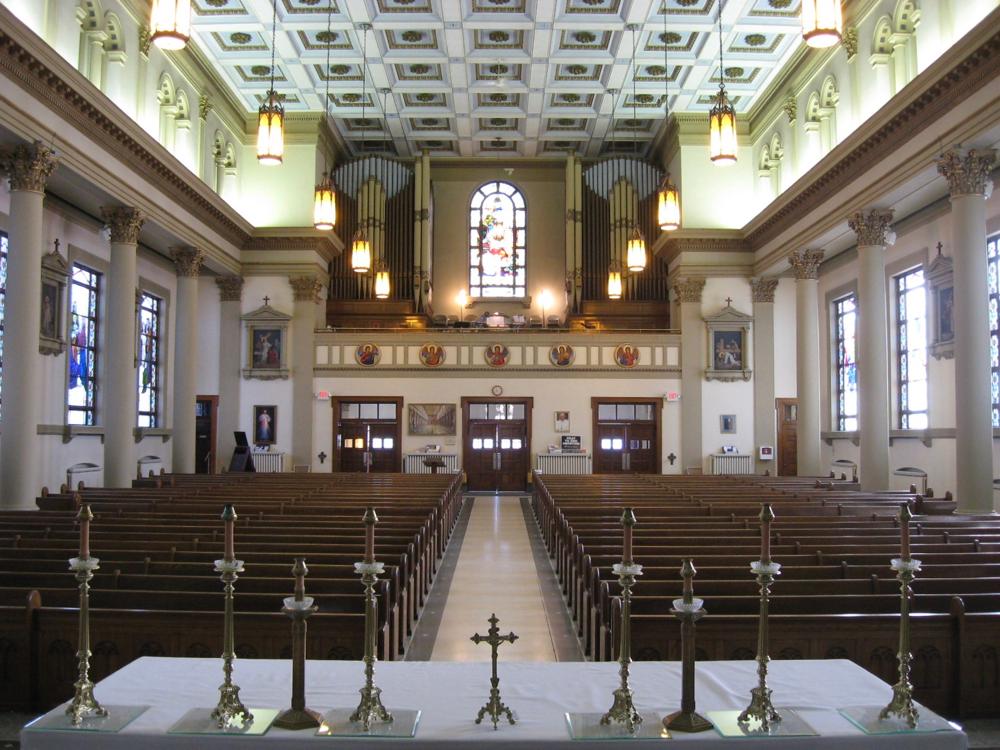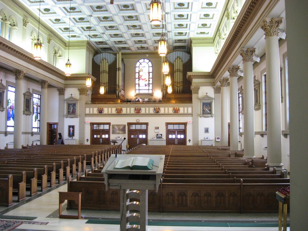 The organ is installed entirely in the south organ case that once housed part of the parish's Kimball organ. The organ retained the Contra Bass pedal pipes that were part of the Kimball organ. In addition, a three-rank mixture was added to the organ at some point (possibly by Mutchler Organ Company). The Wicks console was replaced with a Rodgers console in 2001, and digital stops were added to the instrument.