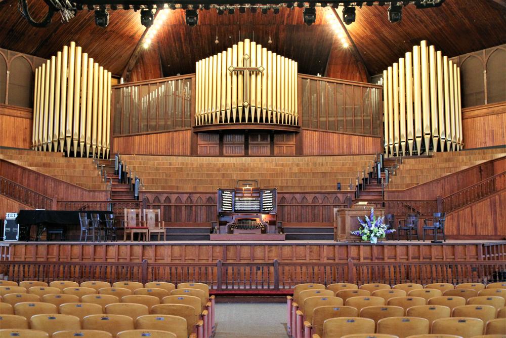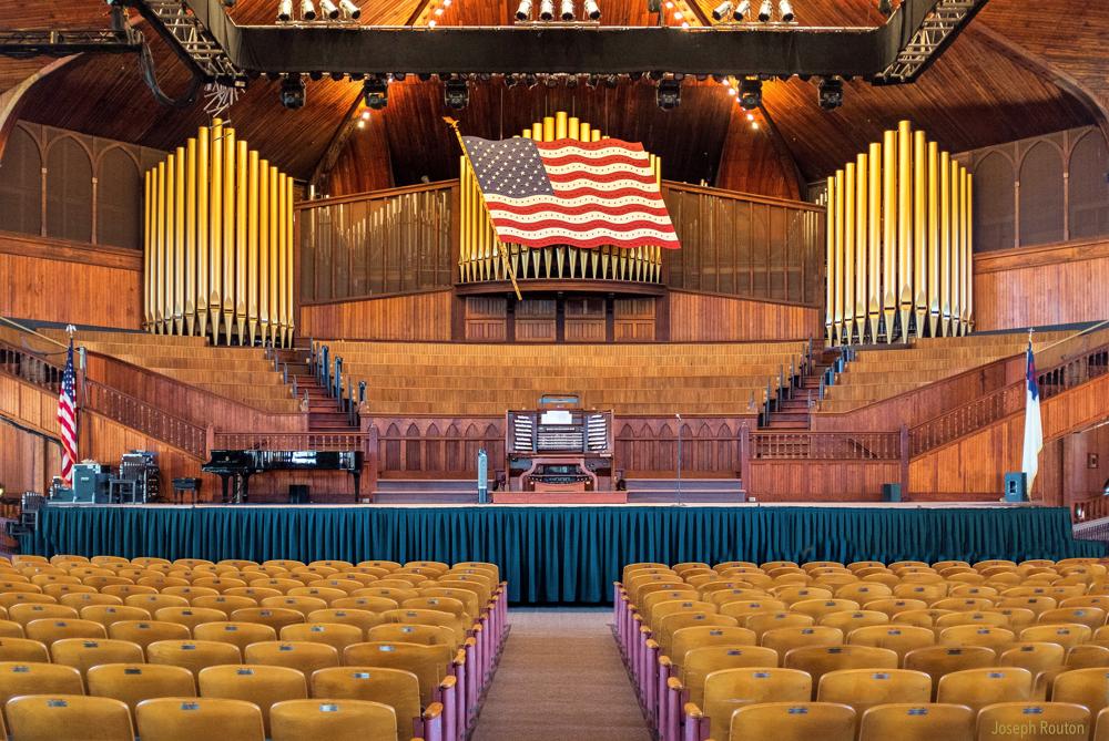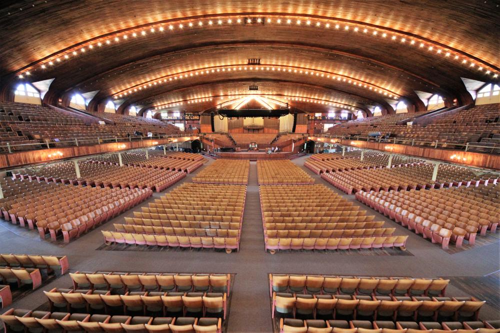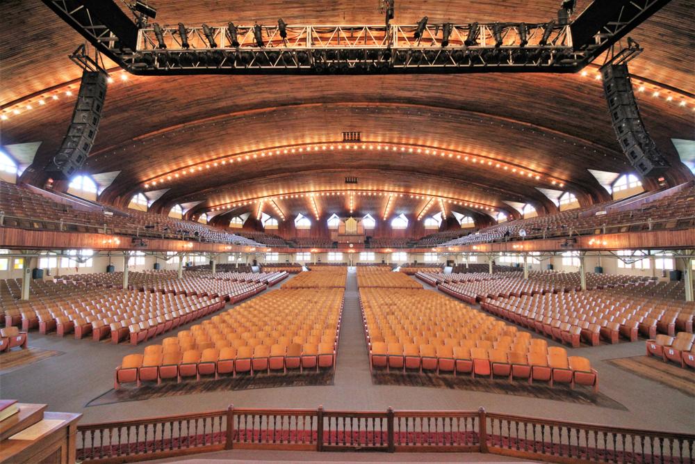 When build in 1908, the auditorium sat 10,000; it now seats 6,000; the Echo/Gallery organ is 300 feet (91m) from the front organ.
