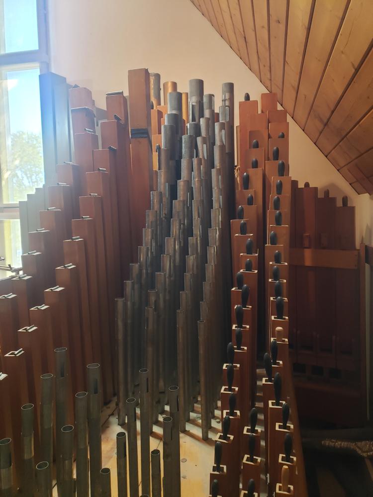 From the Grandall & Engen Organbuilders website: "We were called in to evaluate a very small organ at Faith Lutheran in Prior Lake. Various electronic organ salesmen had declared the organ dead. In just a few hours we resurrected it. It was just in need of a standard service call. We found that it had originally been built for a practice room at Concordia College in Seward, Nebraska. Nobody knew when it was installed at Faith. Since it was designed for a practice room, the bass pipes were much too small to produce adequate bass for a church. We added larger pipes at the low end and cut off the original pipes to make them fat enough to produce adequate bass for the church."
