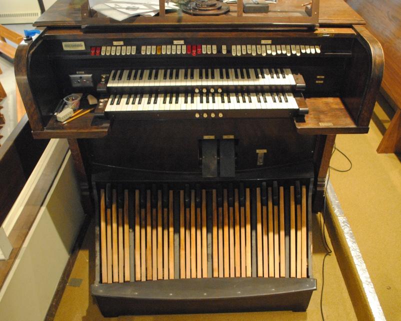 Updated through online information from James R. Stettner. -- The organ was originally built for the Smith Co. Mortuary on Riverside Drive, and was removed and relocated to St. Stephen's by Harold Curryer when the mortuary was razed. Several original ranks/stops were altered or eliminated, including the harp. Mr. Curryer added an exposed 8', 4', 2-2/3', 2' unit Spitz Principal to the Great, and an 8'/4' Trumpet to the Swell. Other damaged pipework was never repaired. The console has only a 2" diameter windline feeding it, so the combination action is very slow to respond. The blend between new and original Kimball pipework is poor. There are no independent Pedal registers, just extensions and borrows.