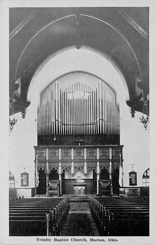 Updated through online information from Andrew Henderson (March 23, 2025): According to *The Marion Star* (May 7, 1908) this instrument was built by Lyon & Healey, and installed under the supervision of F. R. Smith, for a total cost of $3,500. At the time the newly-dedicated church building was known as Free Baptist Church, Main Street, Marion, OH, and was renamed Trinity Baptist Church upon a merger with First Baptist Church, Marion.