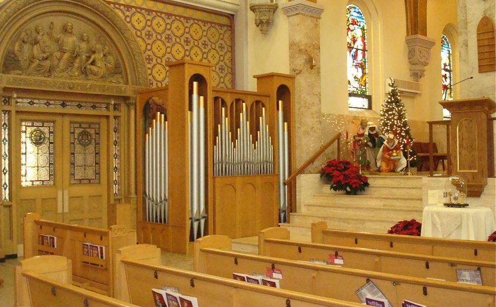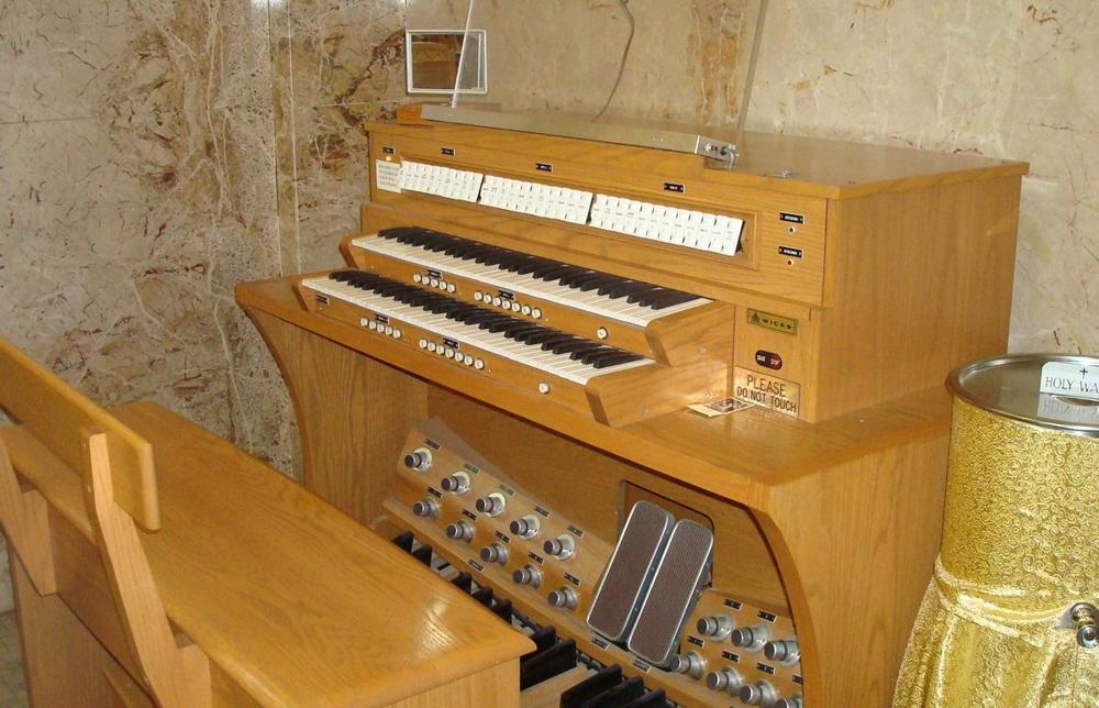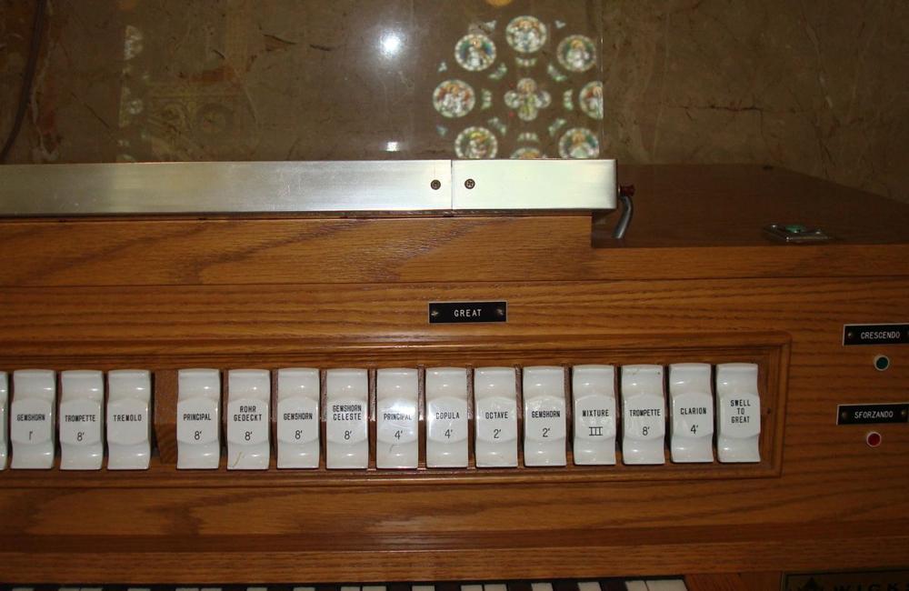 -- The Cathedral signed a contract(s) with Wicks to rebuild the old three manual Schaefer organ in the gallery. At the same time either in a separate contract or as part of this contract the Cathedral contracted for this organ, a small very unified and duplexed five-rank organ with a two manual console to be installed in the Front of the Cathedral while the Gallery organ was being built. It was then to be the Antiphonal Division of the Gallery organ. The Opus number for this organ is 6055 and the number for the Gallery organ is 6054. This Antiphonal organ was installed in 1985 several months to a year or so before the Gallery organ (Opus 6054) was installed in the Gallery. <br><br>I know this because I played this organ when there was no organ in the Gallery and also because I helped carry in the pipes for the Gallery organ and the Antiphonal organ was in place when that was done. It is amazing that Wicks could squeeze 30 stops including a Celeste and III rank mixture out of 5 ranks of pipes. It is by far the most unified and duplexed organ I have ever come across.