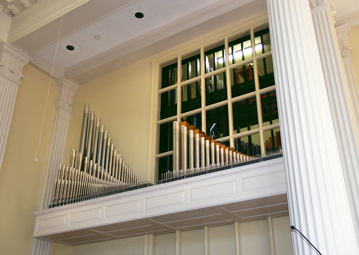-- Parkey rebuild included replacing reeds, revoicing of flues, as Phil Parkey writes in the CD jacket, "In its original execution, the organ's tone suffered from serious blandness. Flutes were voiced in the same style as strings, and principals were kept on the anemic side of richness. Many weeks ensued as we voiced and re-voiced stops for optimal color and blend. Foundations were bolstered as mixtures were reigned in."