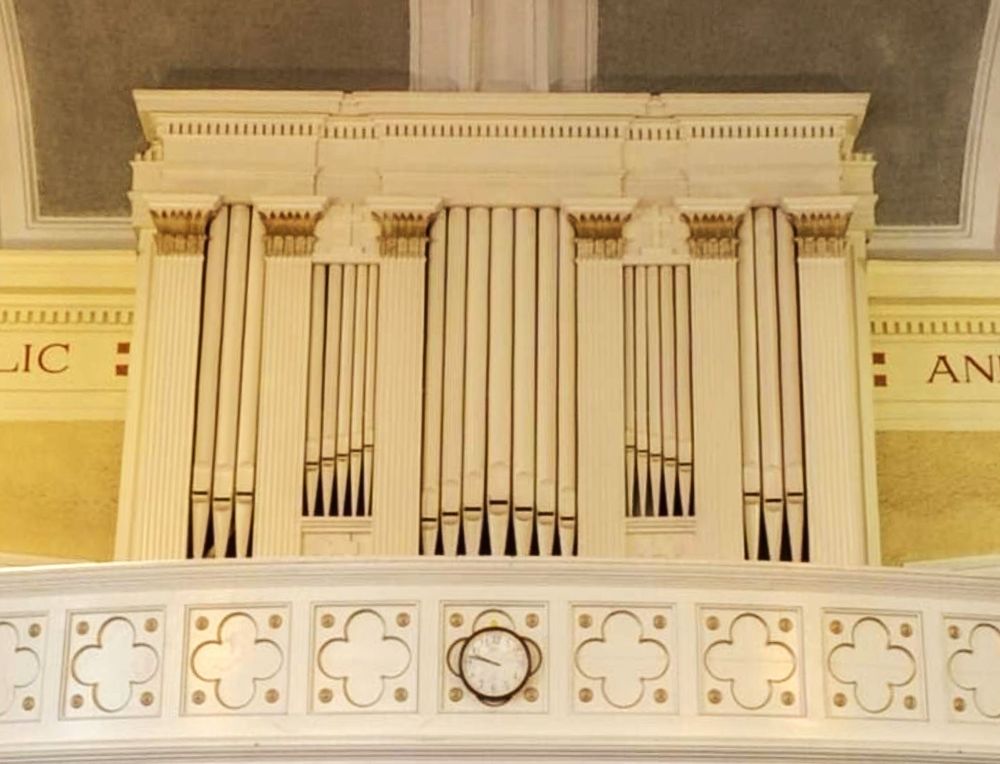 An original installation. Identified by david m storey, based on personal knowledge of the organ. -- Only the case exists. All interior parts, actions, pipes, keydesk are lost. Exact date and stop list unknown at this time.