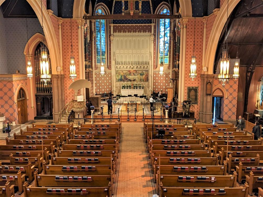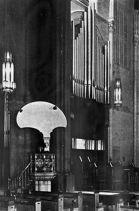 An original installation. Identified by Sam Cherubin, using information found in The Organ in Church Design by Joseph Blanton. -- I am assuming it was 3 manuals, and the main organ was located in the Chancel and the Great was located in the Nave of the Church.