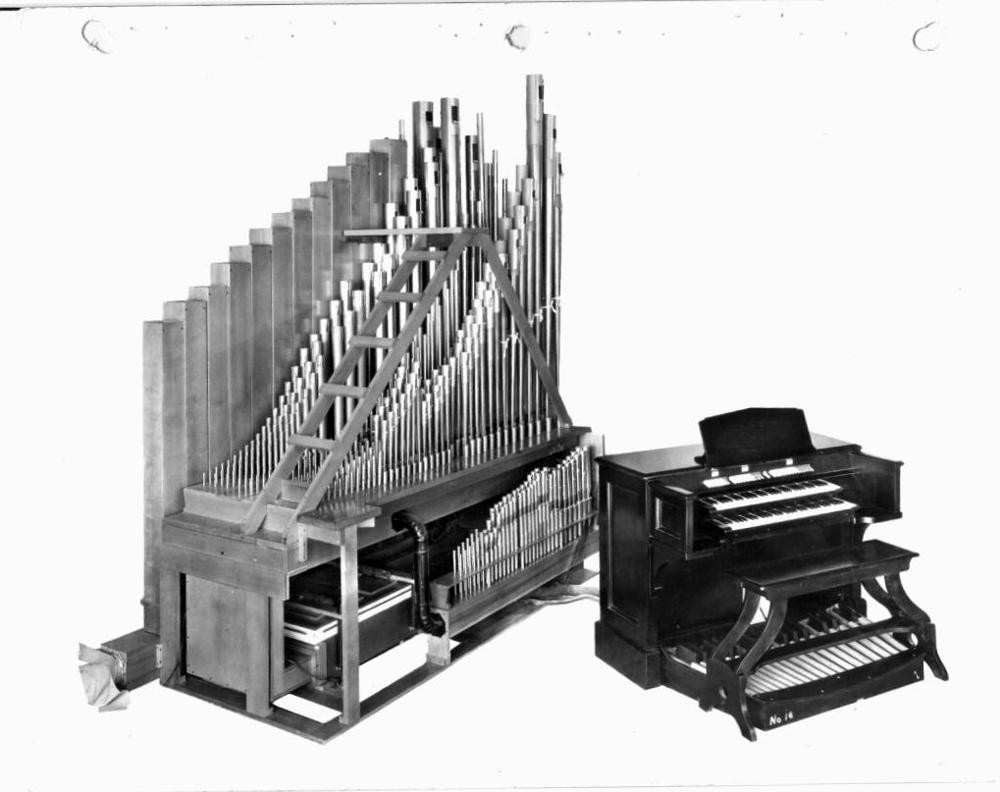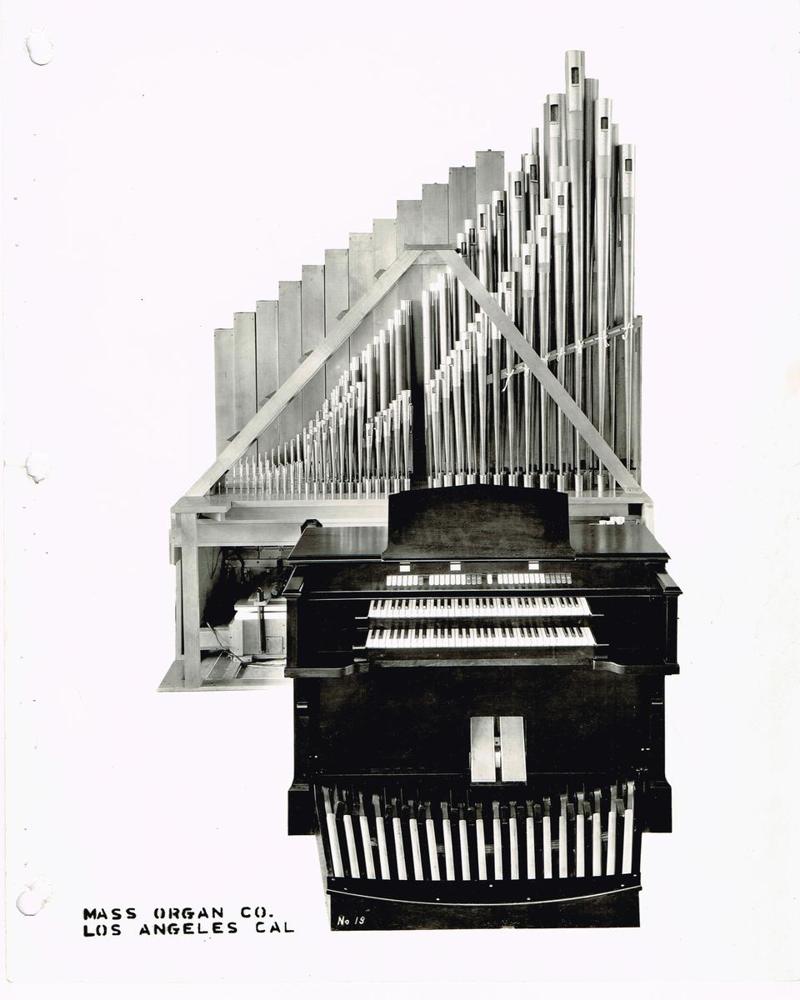 This entry describes an original installation of a new pipe organ. Identified by Douglas H. Cable, based on personal knowledge of the organ. -- All switching is done in the console. Switches and construction details nearly identical to Robert-Morton. Archie March built the metal pipes the wood pipes are supply house pipes.