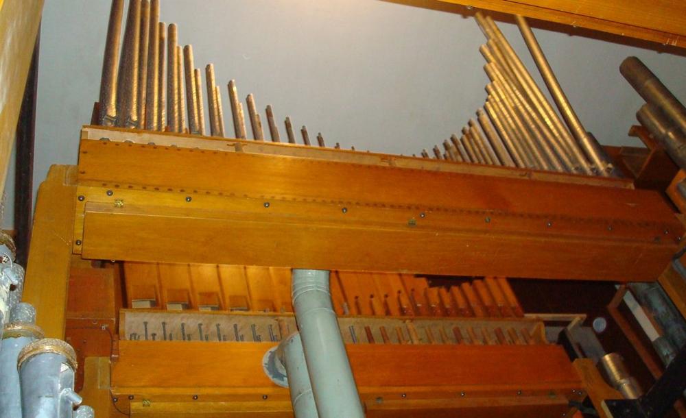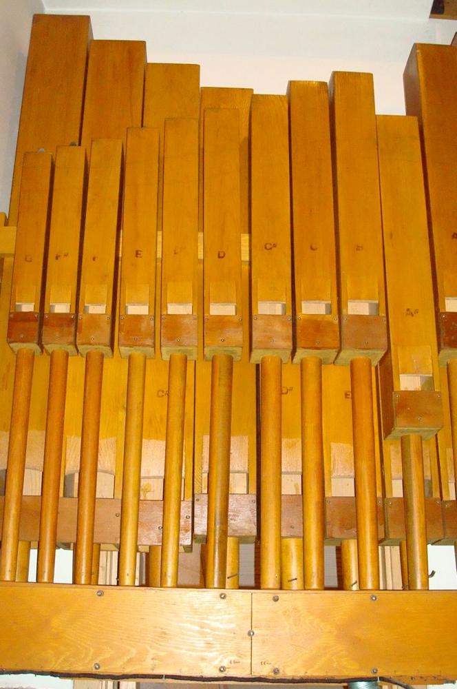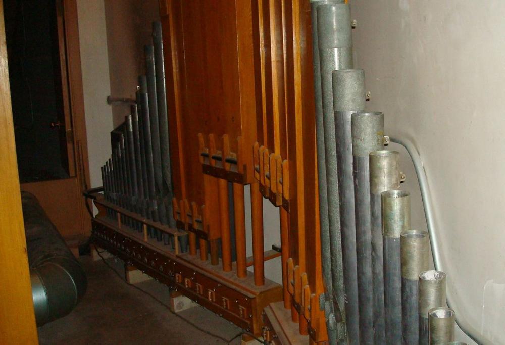 -- The "History of Oconto's First Presbyterian Church" by John B. LeMay on page 9 states: "When the old church was razed in 1960, the organ was disassembled, cleaned, and then re-installed by Gustav F. C. Fabry, at a cost of $6,600.00. Included in this cost was an exchange of pipes in which a 15th rank replaced a Vox Humana Stop; and a new Open Diapason was placed in the Great Organ, with the old Diapason pipes being used for an additional pedal stop of 8 feet and 4 feet."