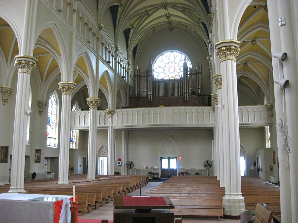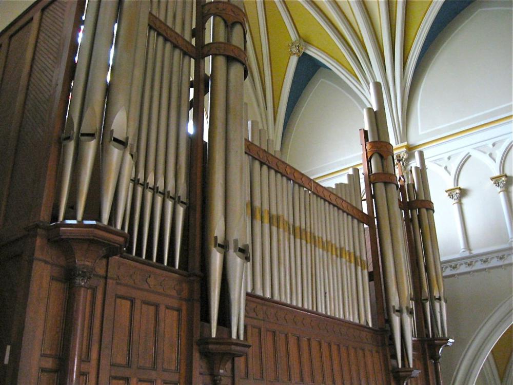 The organ was likely installed when the building was new (1912). It was replaced by a Wicks organ in 1957, but the original facade remains. The Wicks organ was installed behind the facade.