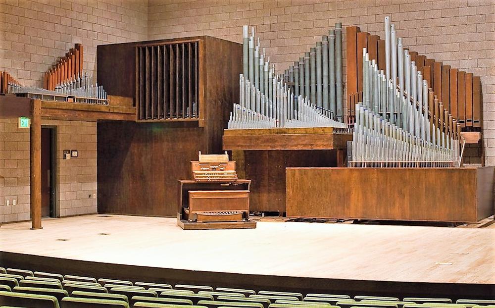 Updated through online information from William Dunklin. -- To clarify this organ's history: two buildings on Maryville College's campus were torn down at the same time, Wilson Chapel and the Recital Hall. Both buildings had Holtkamp organs. This organ was originally built for the Recital Hall. When that building was torn down, the organ was removed, rebuilt and installed in the new Clayton Performing Arts Center. The Wilson Chapel organ, a Moller extensively rebuilt and expanded by Holtkamp, was sold. The pedal Bourdon from the Wilson Chapel organ (a Holtkamp-revoiced Moller rank) was used to replace the missing rank from this organ, though it is slightly larger in scale than the original.