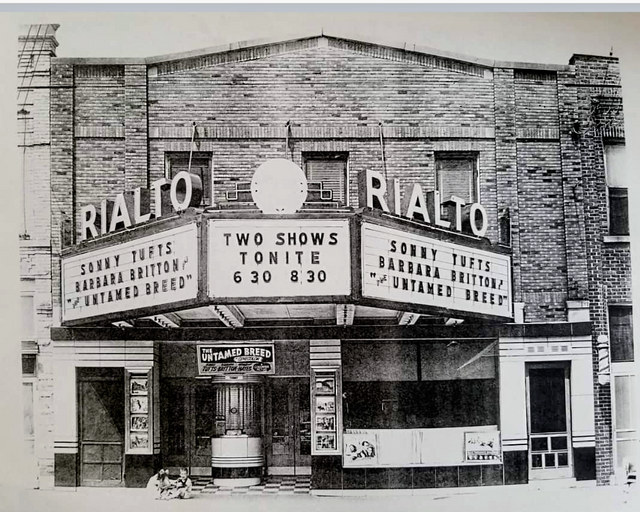"The Rialto Theatre was remodeled in an Art Deco style in 1939, reopening with Clark Gable in “Gone with the Wind”. The Rialto Theatre was closed in 1975. It stood vacant and unused for many years. In 1988 it was demolished with plans to turn the site into a parking lot."