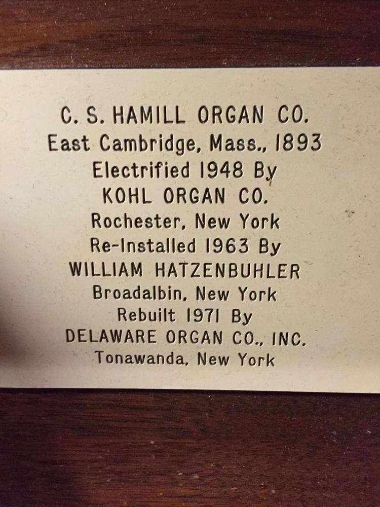 This is a rebuild of an existing organ. Identified by John Novak, based on personal knowledge of the organ.<br><br>The Castile UCC organ was originally installed in 1893 by the S S Hamill Co of Cambridge, MA and was a tracker consisting of 13 ranks of pipes. In 1948 it was electrified by the Kohl Co. of Rochester, NY and a new console was added. <br><br>This process replaced the mechanical tracker action with an electromagnetic one, however, the chests and the pipe work remained unchanged. In 1963 the church added a new sanctuary and the organ was moved from its original location to its present location by William Hatzenbuhler of Tonawanda, NY.<br><br>There was no revision or addition to the instrument at this time; it was simply moved. By the 1970's the chests (from 1893) were beginning to fail and the church wanted to upgrade the sound of the instrument. To this end the services of the Delaware Organ Co. of Tonawanda, NY were secured to perform a major upgrade and revision.<br><br>In 1971 the Great and Pedal divisions were rebuilt and a new console with a combination action was added at a cost of $20,000. The Swell was rebuilt in 1977 at a cost of $15,000. All chests were replaced, but most of the old pipework was retained and an equal number of new pipes were added.